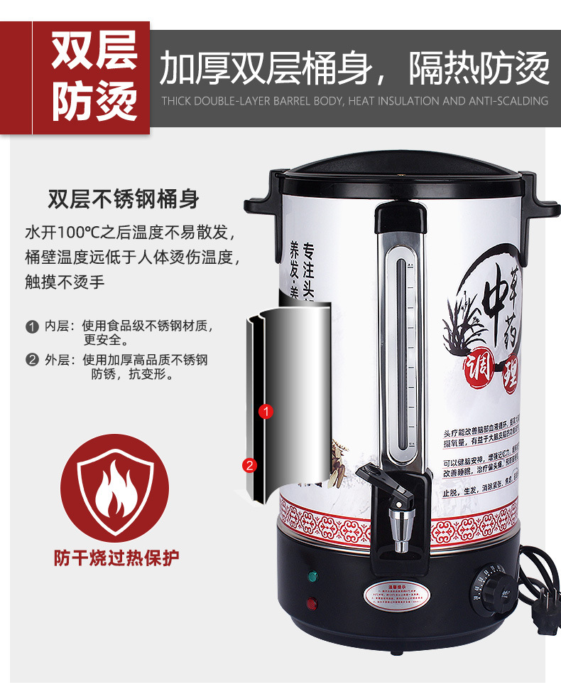 barril de aislamiento térmico eléctrico de acero inoxidable, barril de hierba de sopa de tratamiento de la cabeza comercial, barril de hervir agua, barril de aislamiento térmico automático, salón de belleza, olla de hierba de medicina tradicional china