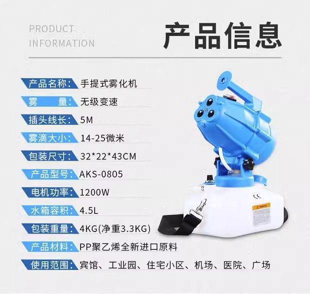 pulverizador eléctrico para prevención de epidemias, desinfección y esterilización por atomización portátil de pulverización de aerosol especial para hoteles, escuelas y criadores