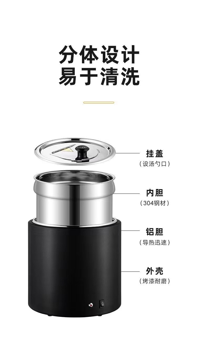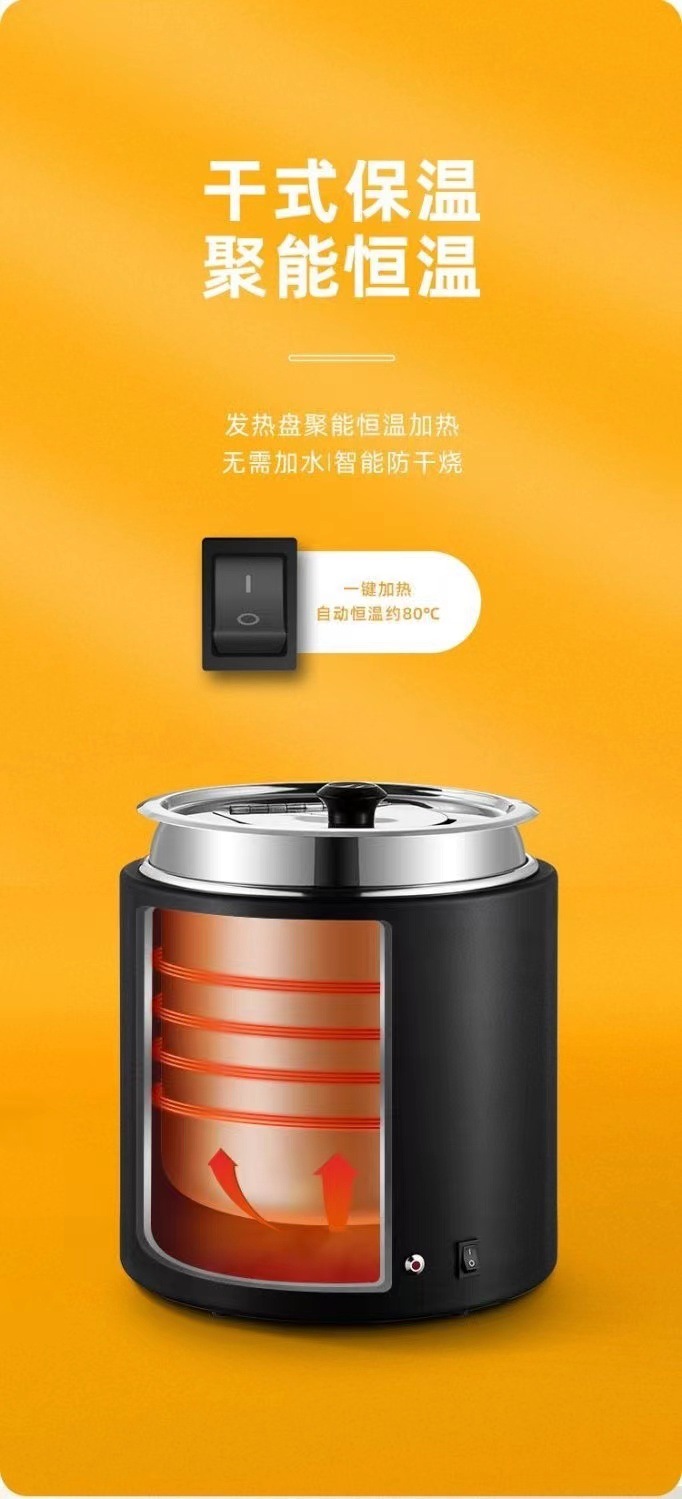 304 barril interior de pintura seca y húmeda de dos usos comerciales de calentamiento de calentamiento eléctrico buffet de sopa barril de perla de calentamiento de calentamiento
