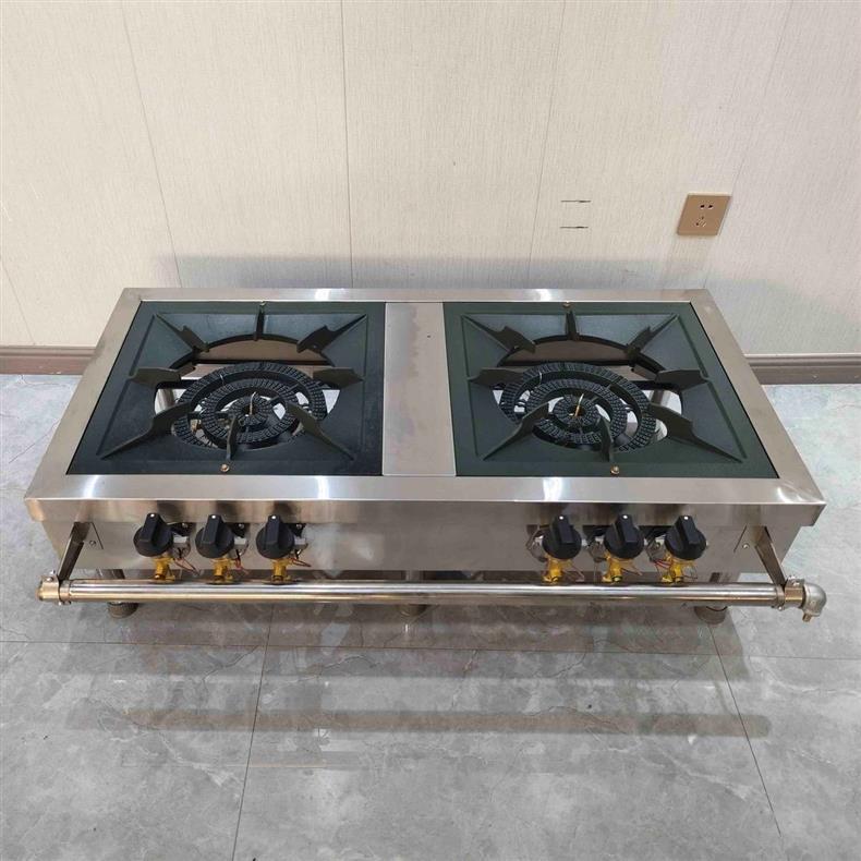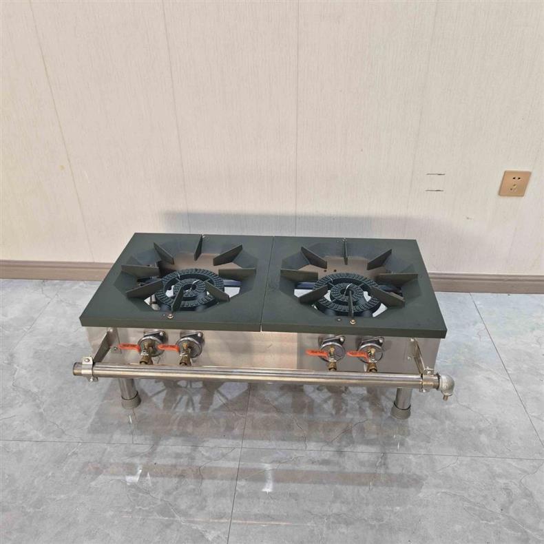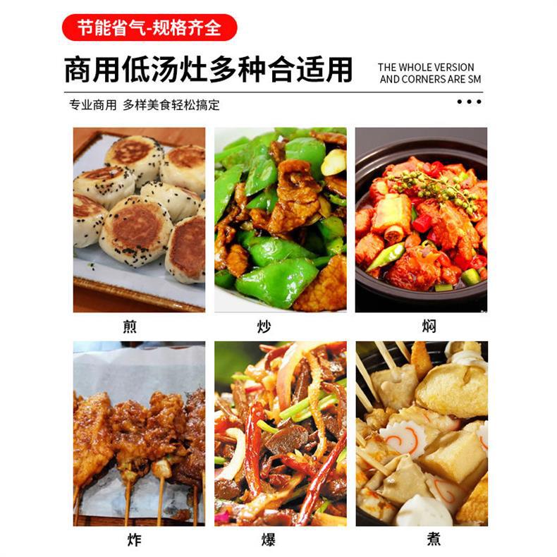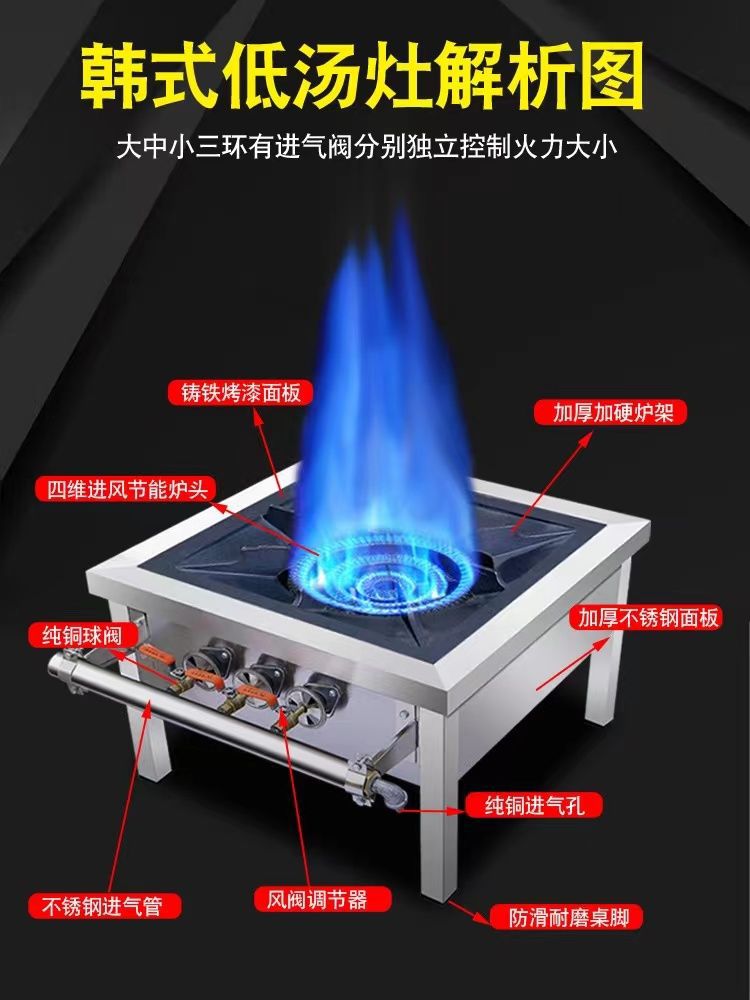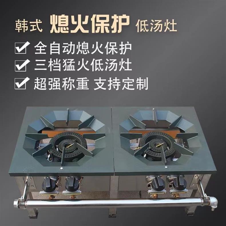 Comercial de estilo coreano de bajo contenido de aluminio de acero inoxidable de doble ojo de ahorro de energía de gas horno de pies bajos horno de sopa de suspensión horno de niños bajos