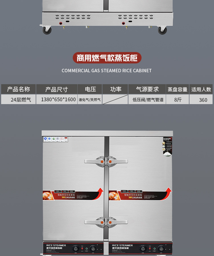 Commercial de 24 capas de doble puerta arroz al vapor de gas doméstico de arroz al vapor de 24 capas de vapor eléctrico de doble puerta