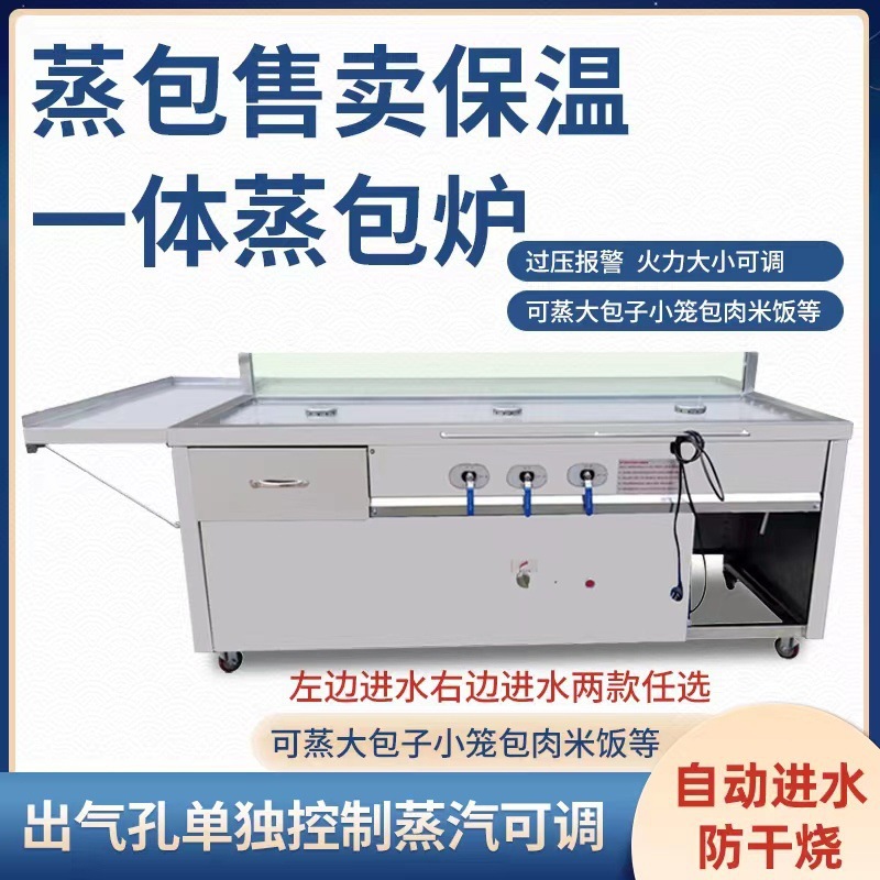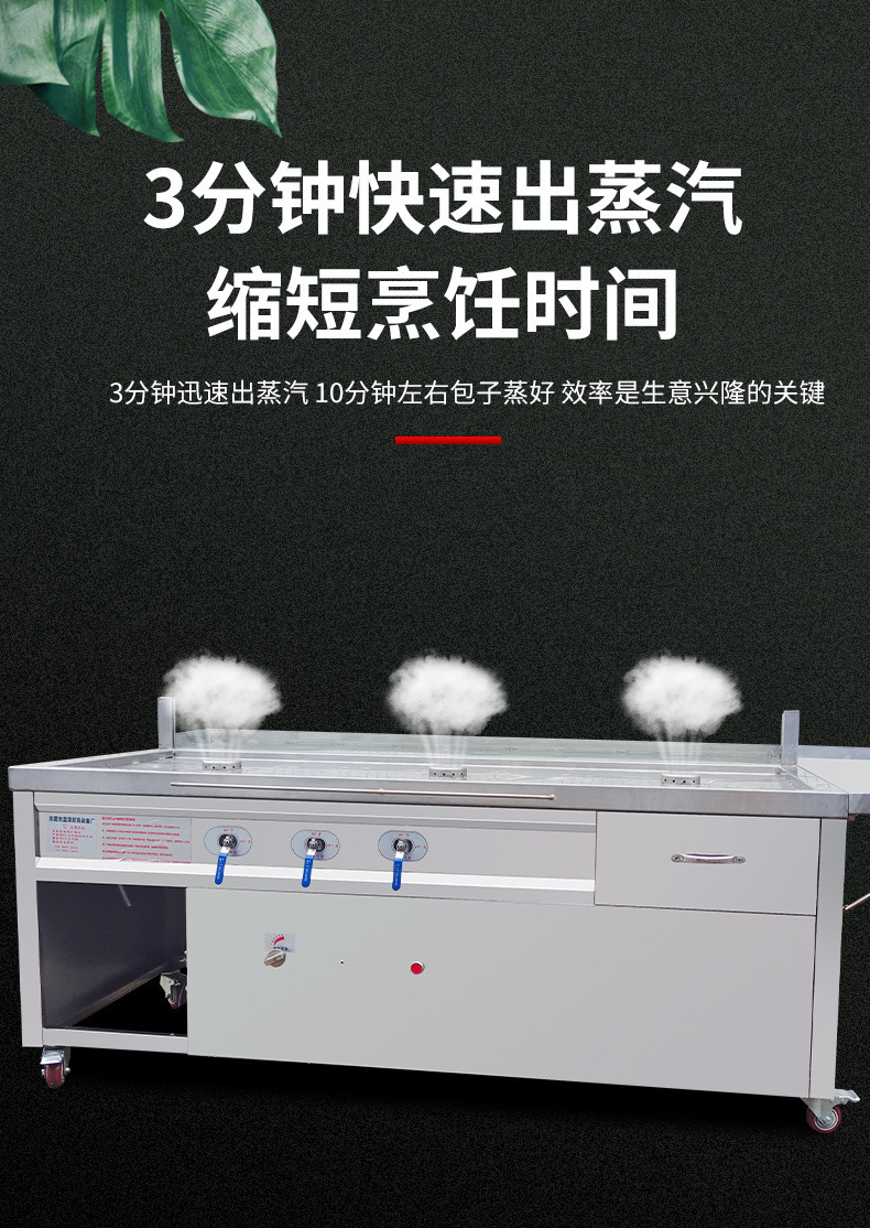 horno de vapor de tres agujeros para desayuno de gas comercial de pan al vapor aislante de vapor poroso integral de ahorro de energía máquina de pan al vapor mesa de venta