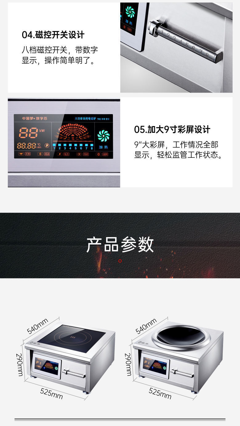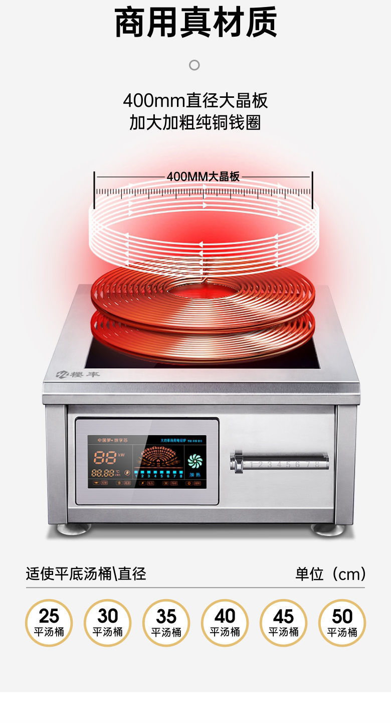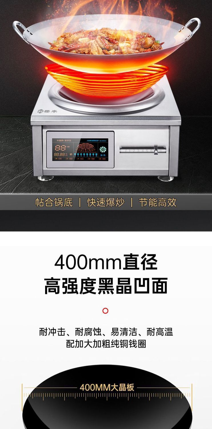 horno electromagnético comercial de 15KW horno de mesa cóncavo de alta potencia horno de fritura eléctrica 8000W plano horno de cocina 12KW comedor frito