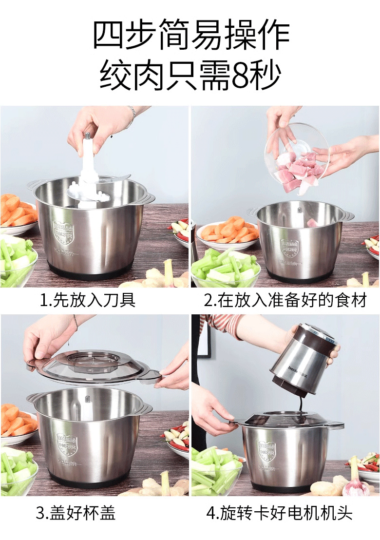 Pequeña máquina de molienda de carne multifuncional, relleno de carne, batedor de alimentos suplementarios, mezclador doméstico, pulverizador de ajo