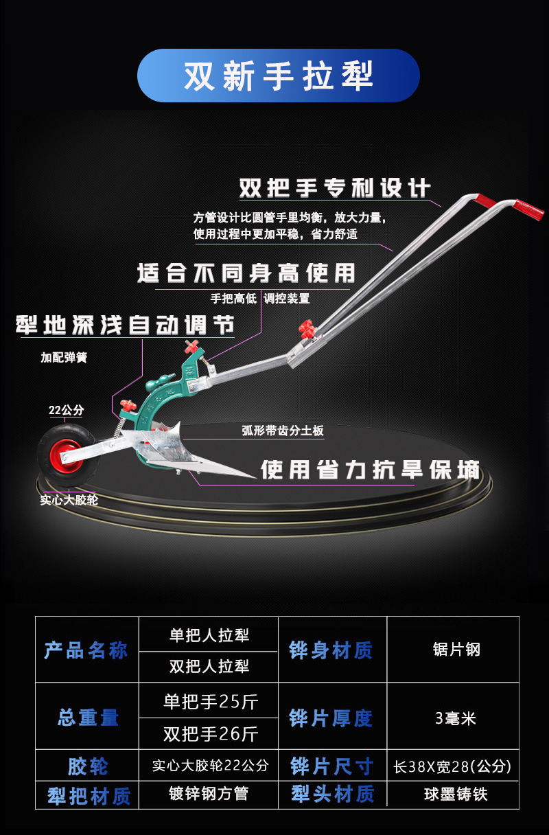 | Especificaciones del producto | Modelo económico arado a mano - arado de Sierra de acero, arado a mano convencional - arado de Sierra de acero, arado a mano Limin - arado de Sierra de acero blanco, arado a mano (con marco de contrapeso) - arado de Sierra de acero blanco aumentado (modelo de refuerzo), arado de tracción de doble mano (con marco de contrapeso) - arado de Sierra de acero, arado de tierra volcado de doble mano del Arado medio (placa de arado de manganeso), arado de Sierra de acero de doble mano del Arado medio (con caja de contrapeso), arado de Sierra de acero de doble mano del Arado medio (modelo de refuerzo), arado medio - arado blanco aumentado (modelo de refuerzo), arado medio (lado de arado medio + doble mano)vuelco En ambos lados), arado grande con un solo Mango - placa de arado grande ajustable de acero de manganeso (modelo pesado engrosado), arado grande con un solo Mango - placa de arado grande de acero de Sierra Grande (modelo pesado engrosado), arado grande con un doble mango de arado grande con un lado volcado de tierra (placa de arado de acero de manganeso), arado grande con dos mangos intercambiables con un gran arado afilado (modelo de lujo), arado grande con dos mangos - placa de arado grande con Sierra Grande (modelo de lujo) |
