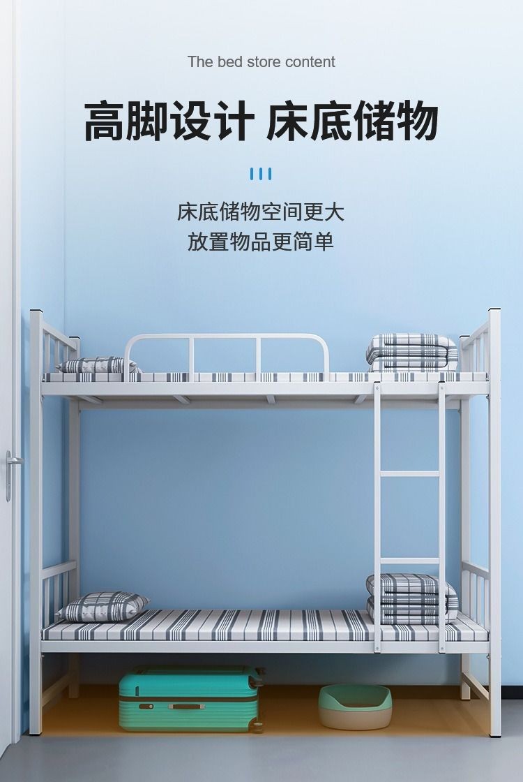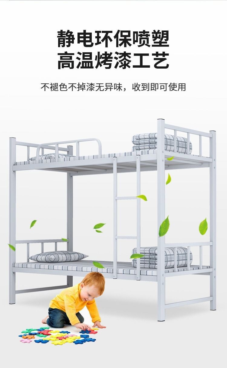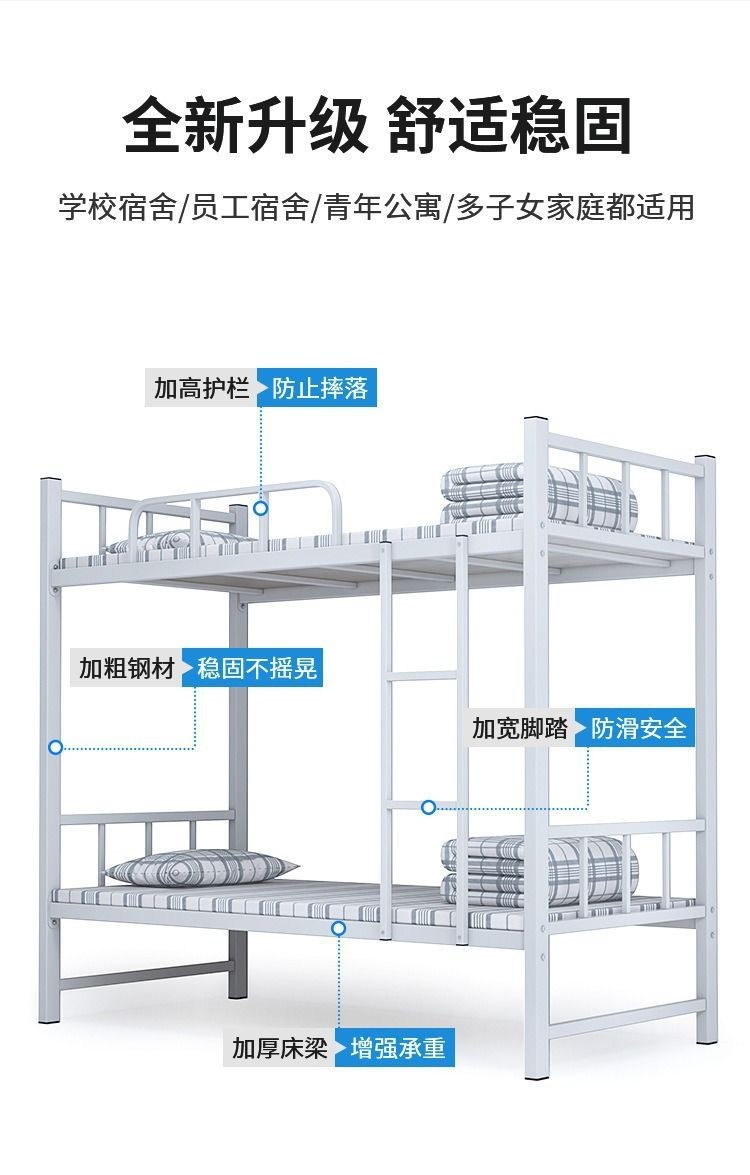 Cama de hierro de doble piso gruesa, dormitorio de personal, estante de cama superior e inferior, escuela de hierro forjado para dos personas, cama de hierro alto y bajo