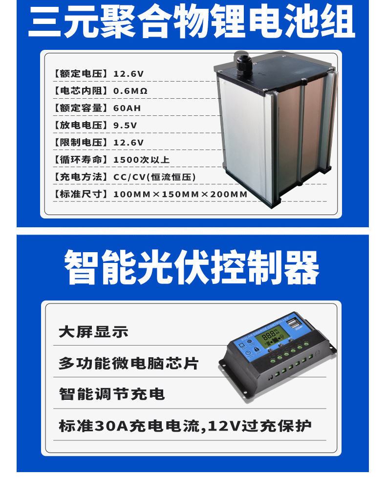 | Especificaciones y modelos | Turbina eólica, APP IoT / gestión remota / monitoreo personalizado, paquete I 60W 30AH / 12V, paquete II 80W 40AH / 12V, paquete III 100W 60AH / 12V, paquete IV 150W 80AH / 12V, paquete V 200W 120AH / 12V, paquete VI 400W 180AH / 12V, fuente de alimentación de monitoreo 12V / 24V / 36V / 48V personalizada |