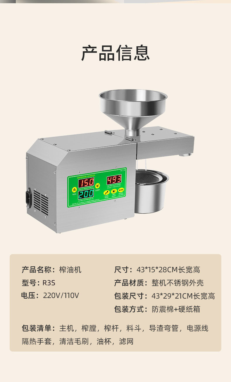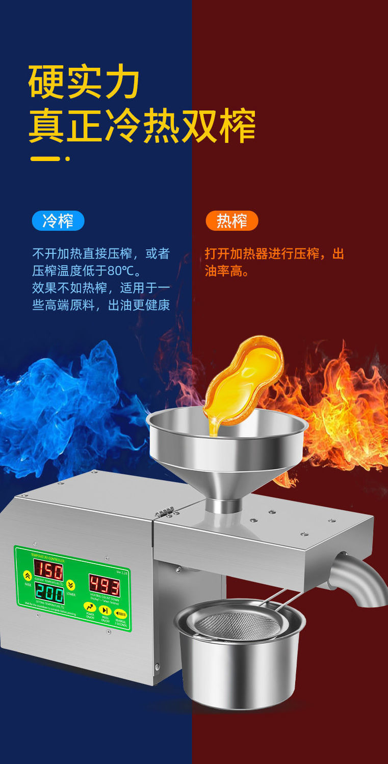 máquina de prensado de aceite doméstica pequeña automática multifuncional doméstica nueva máquina de frita de maní de residuos de aceite inteligente