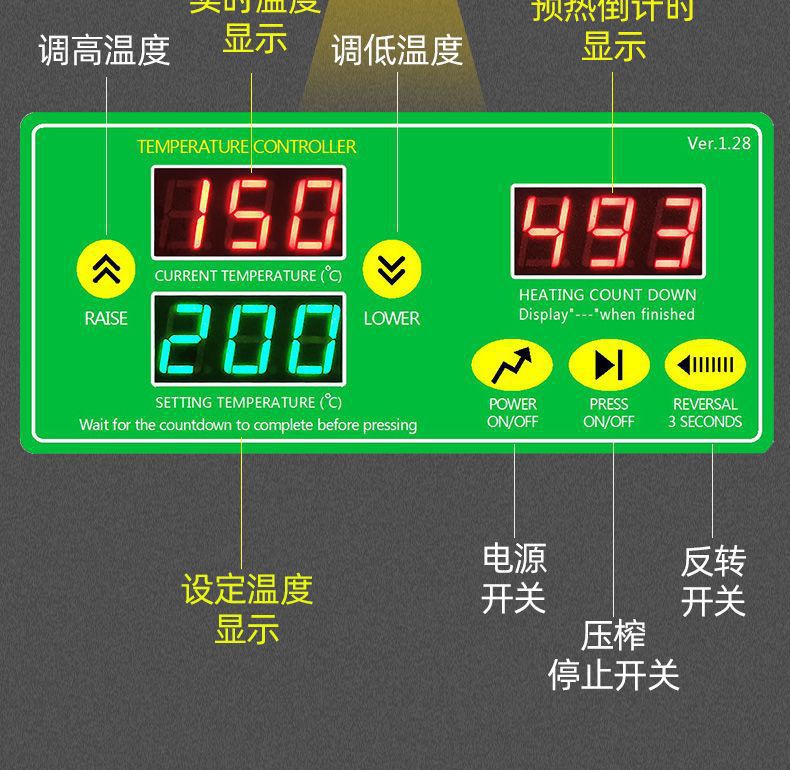 | Color | Temperatura constante - modelo clásico doméstico, temperatura constante - Actualización inteligente sin freír, control de temperatura - ajuste inteligente - alta producción de aceite, control de temperatura - buque insignia - más barra de prensado, nuevo control de temperatura - más barra de prensado original |