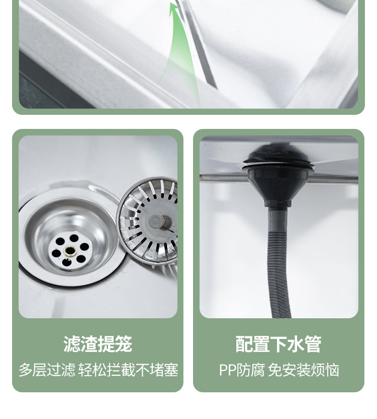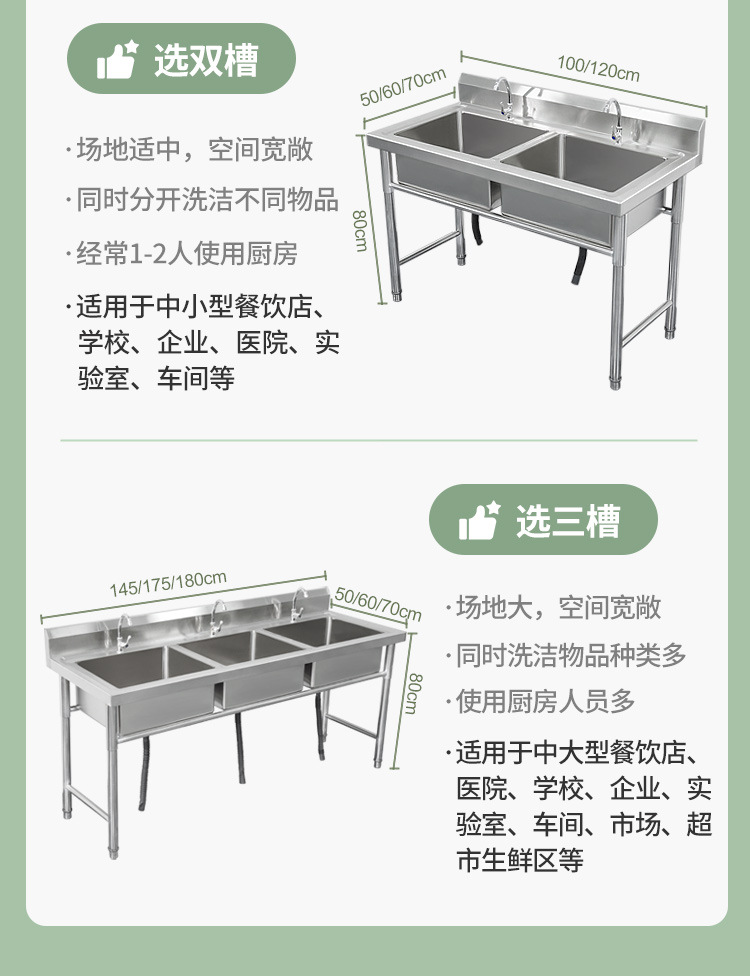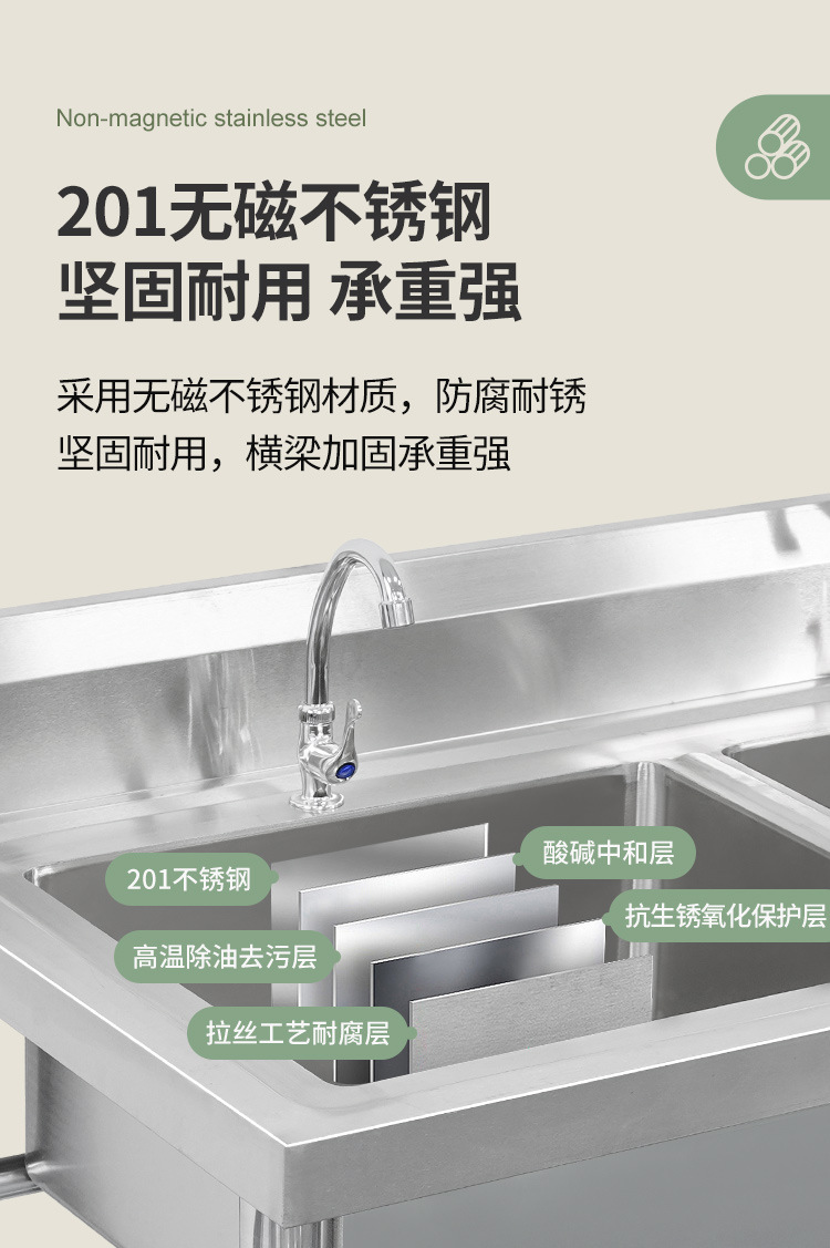 lavabo de acero inoxidable comercial doble triple ranura con soporte lavabo de cocina lavabo para el hogar sin