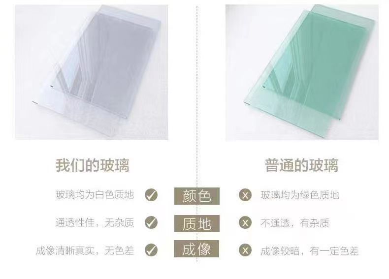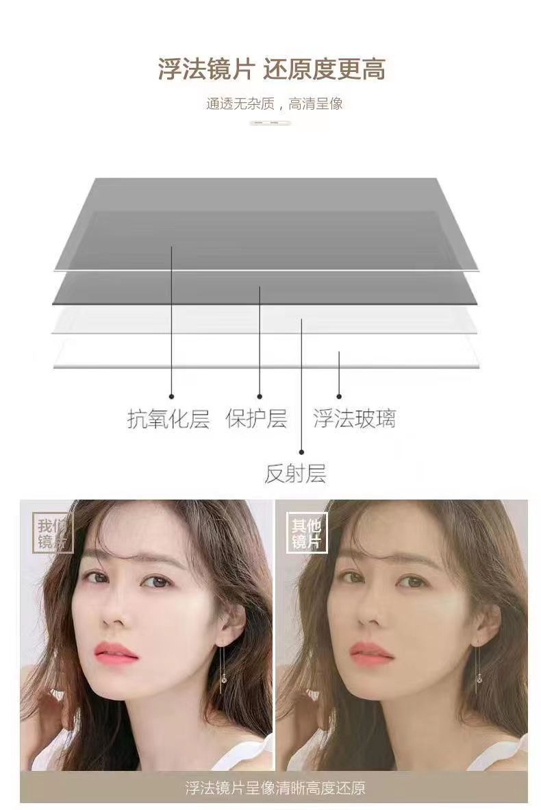 | Tamaño | I5O * 4O HD sin deformación, I6O * 5O HD sin deformación, I65 * 6O HD sin deformación, I7O * 65 HD sin deformación, I8O * 8O HD sin deformación, 3O * 4O espejo pequeño de pieza única |