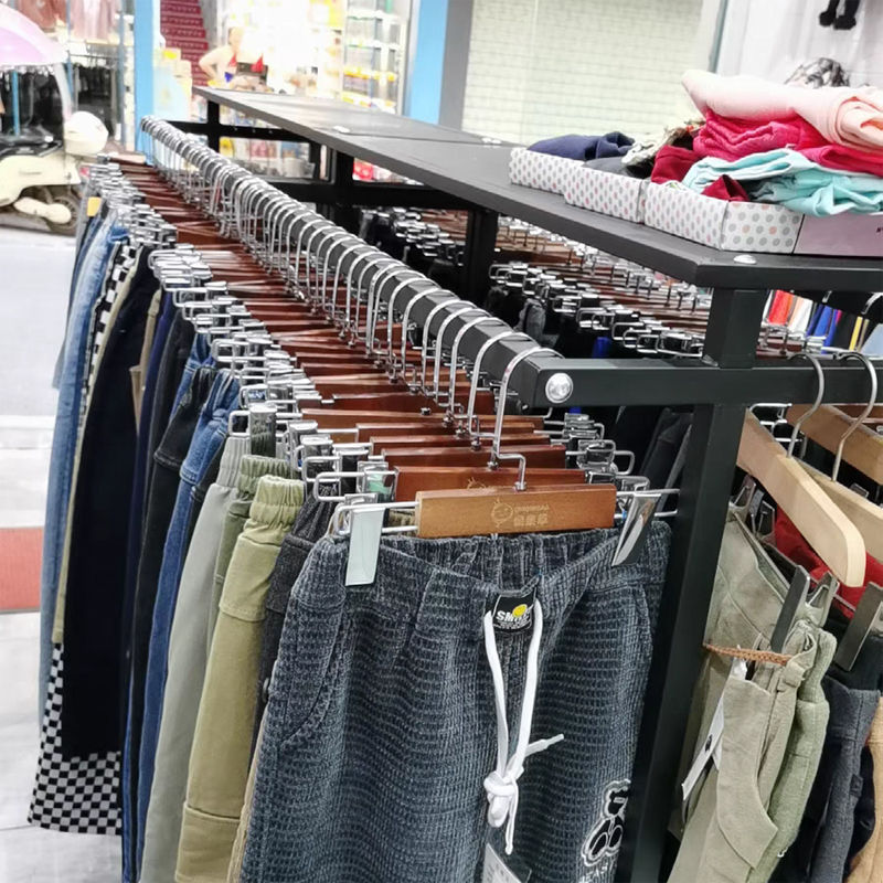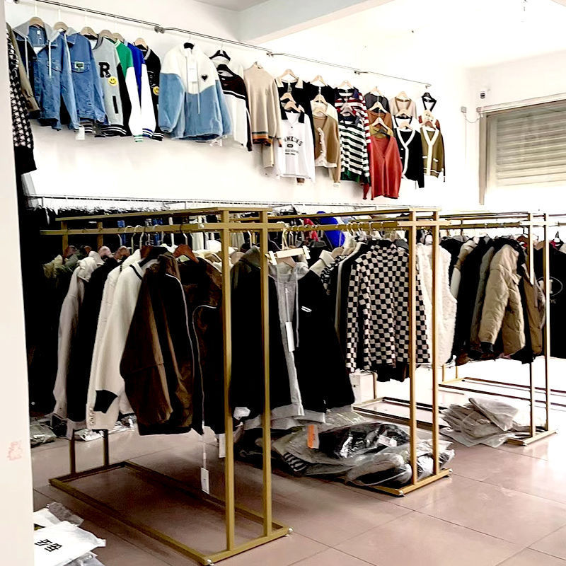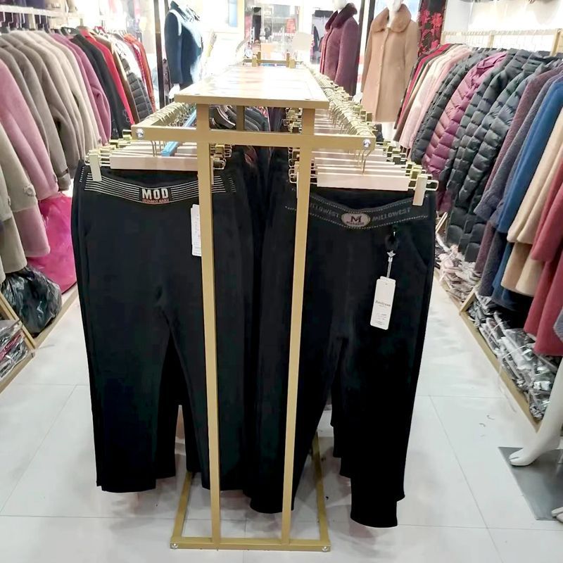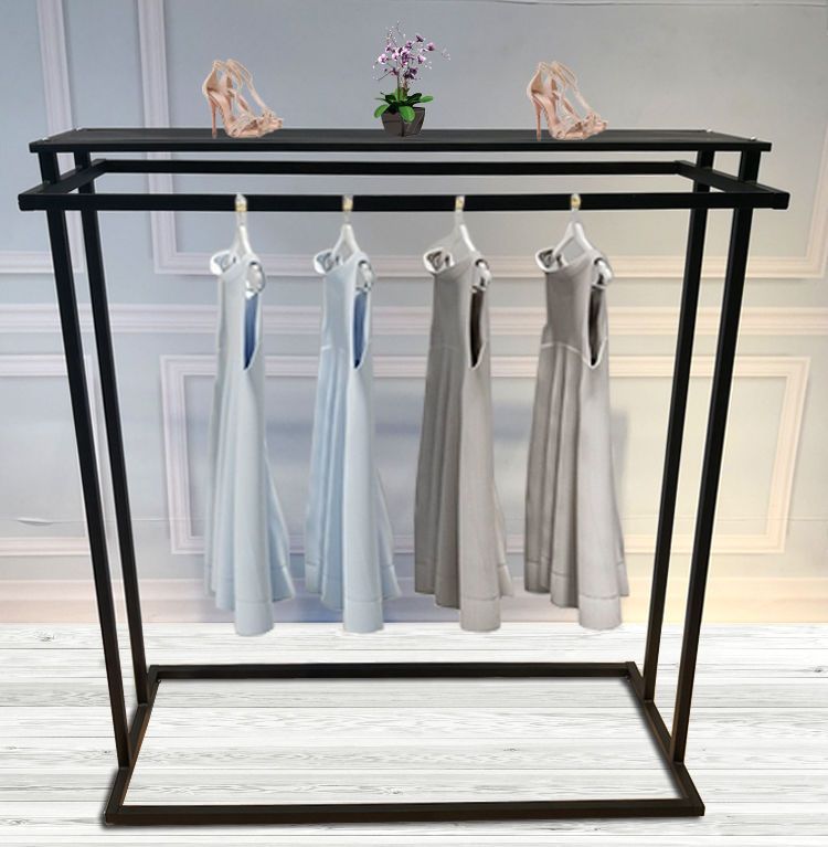 Tienda de ropa estante de exhibición estante de la isla estante de ropa de hombre y mujer doble fila estante medio barra paralela colgante lateral tipo suelo colgante percha