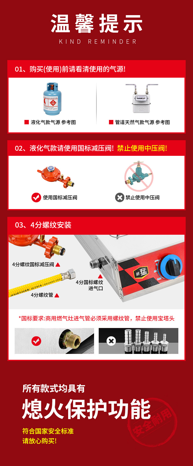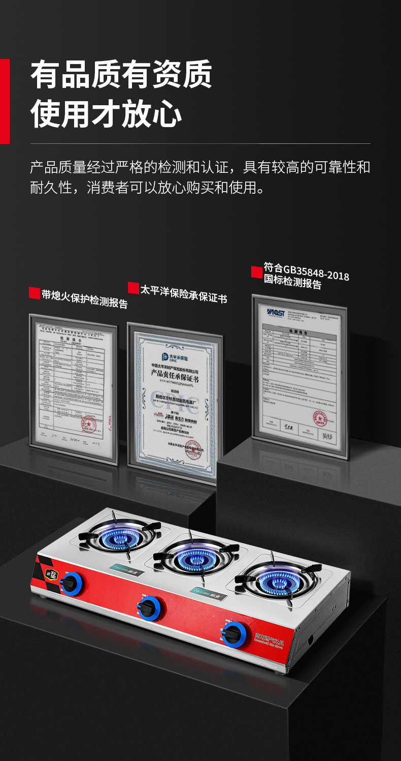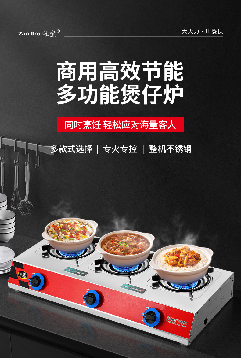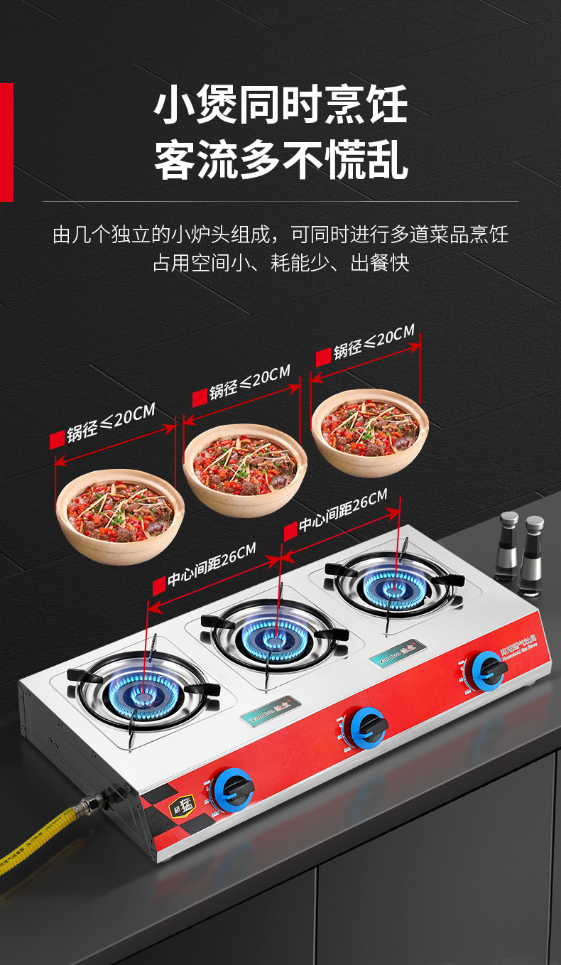 estufa de gas comercial de tres ojos estufa de mortero de gas licuado de gas natural 468 estufa de gas con protección de apagado