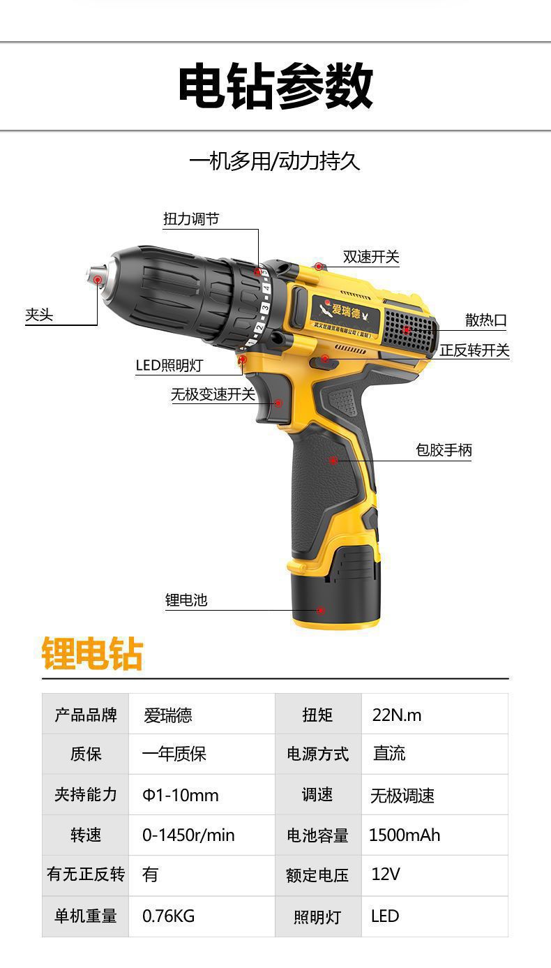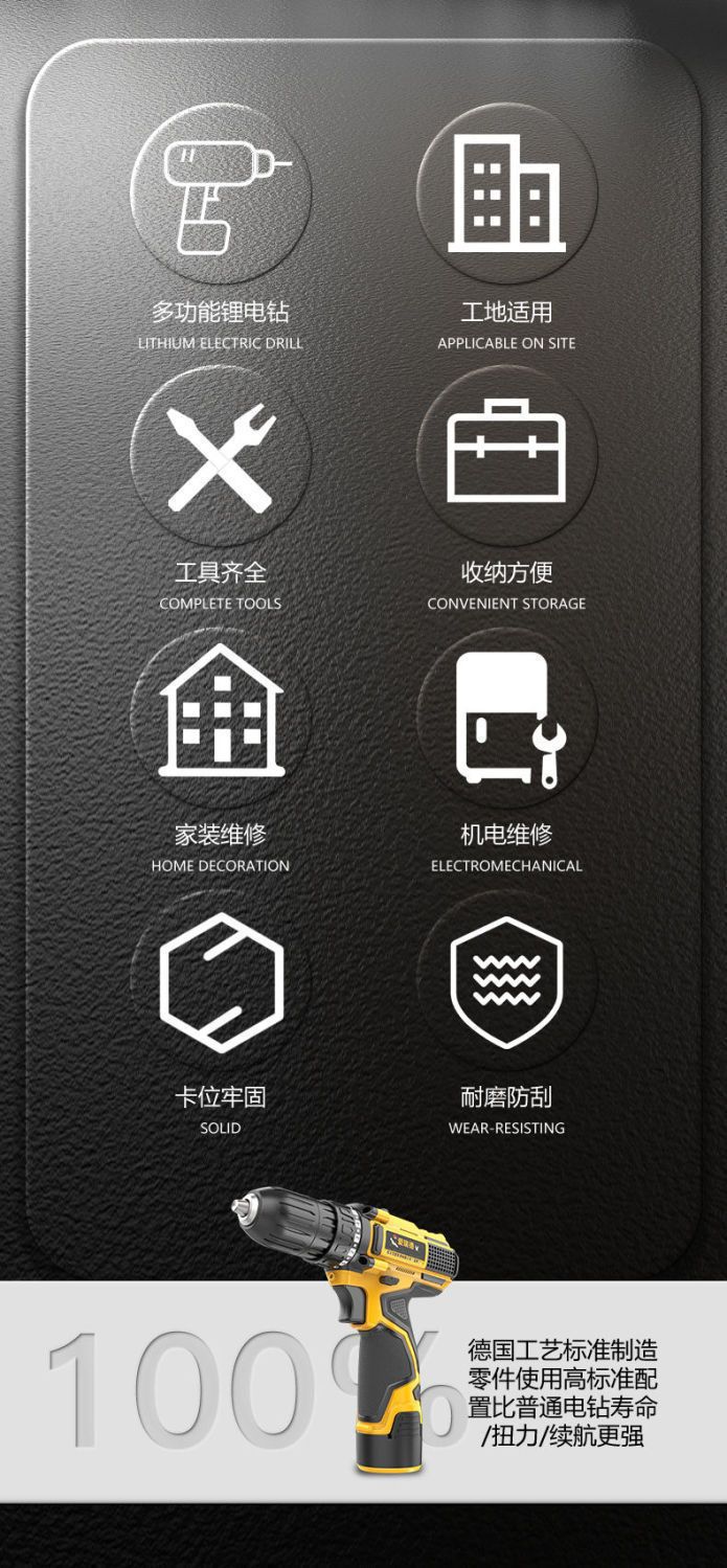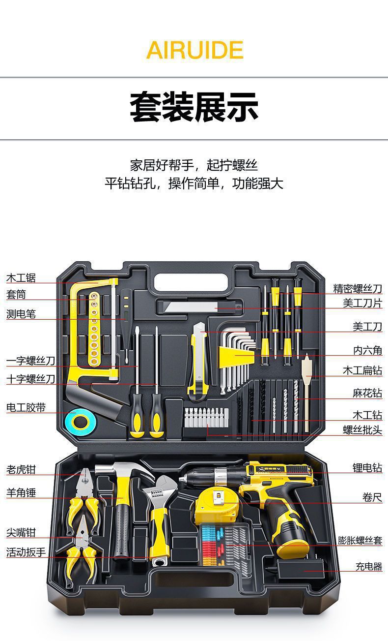 Perforación de linterna doméstica amor recargable taladro eléctrico conjunto de herramientas de hardware conjunto de caja de herramientas RED conjunto de Alemania multifuncional Otros