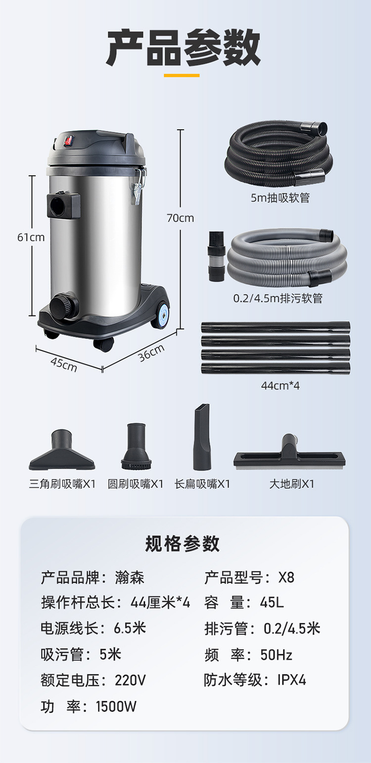 | Especificaciones | 1500W - modelo de actualización de absorción de aguas residuales, 1500W - modelo de lujo con 4 tipos de boquillas de absorción de aguas residuales, 1500W - modelo de lujo con caja de filtro + 4 tipos de boquillas de absorción de aguas residuales, tubo de drenaje de aguas residuales 38 yuan / m 55 mm de diámetro |