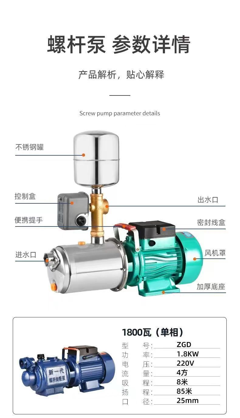 Bomba de succión de tornillo automática doméstica bomba de succión de alta elevación bomba de bombeo de agua del grifo bomba de refuerzo 220V