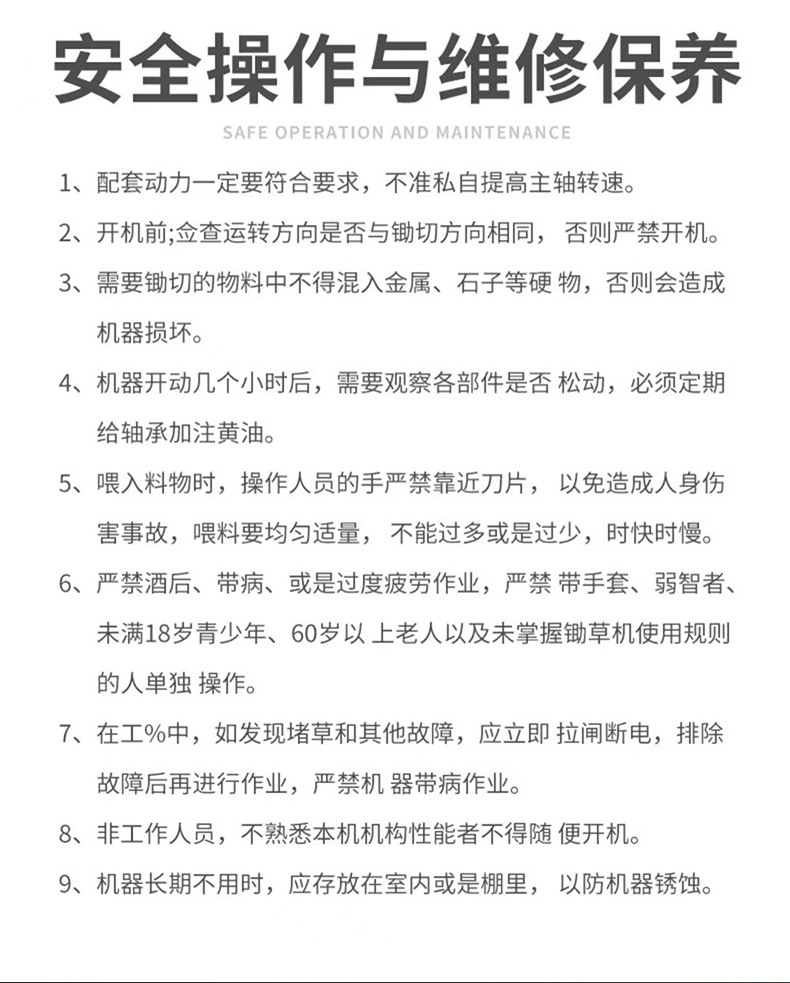 | Especificaciones | ↓↓下方机器↓↓支持定金 ↓↓到付,2.8吨/6刀/可拆/铡揉 单机 【不带电机】 【加强加厚款,2.8吨/6刀/可拆/铡揉+两相4.5千瓦电机 【加强加厚款】,2.8吨/6刀/可拆/铡揉+三相4.5千瓦电机 【加强加厚款】,6刀/3.5吨/可拆/铡揉 单机 【不带电机】 【5mm顶配加,6刀/3.5吨/可拆/铡揉+两相4.5千瓦电机 【5mm顶配加厚,6刀/3.5吨/可拆/铡揉+三相4.5千瓦电机 【5mm顶配加厚,【双出口8刀】4.0吨铡揉 单机 【不带电机】 【5mm加强,【双出口8刀】4.0吨铡揉+两相4.5千瓦电机 【5mm加强加,【双出口8刀】4.0吨铡揉+三相4.5千瓦电机 【5mm加强加,6刀/4.5吨/可拆/铡揉 单机 【不带电机】 【5mm顶配加,6刀/4.5吨/可拆/铡揉+两相5.5千瓦电机 【5mm顶配加厚,6刀/4.5吨/可拆/铡揉+三相4.5千瓦电机 【5mm顶配加厚,【双出口8刀】4.8吨铡揉 单机 【不带电机】 【5mm加强,【双出口8刀】4.8吨铡揉+两相5.5千瓦电机 【5mm加强加,【双出口8刀】4.8吨铡揉+三相4.5千瓦电机 【5mm加强加,6刀/5.2吨/可拆/铡揉 单机 【不带电机】 【5mm加强加,6刀/5.2吨/可拆/铡揉 +5.5千瓦两相电机 【5mm加强加厚,6刀/5.2吨/可拆/铡揉 +三相5.5千瓦电机 【5mm加强加厚,【升级8刀】5.3吨/可拆/铡揉 单机 【不带电机】 【5mm,【升级8刀】5.3吨/可拆/铡揉 +两相5.5千瓦电机 【5mm,【升级8刀】5.3吨/可拆/铡揉 +三相5.5千瓦电机 【5mm,6刀/5.8吨/铡揉 单机 【不带电机】 【5mm顶配加厚加强,6刀/5.8吨/铡揉+两相5.5千瓦电机 【5mm顶配加厚加强款,6刀/5.8吨/铡揉+ 三相5.5千瓦电机 【5mm顶配加厚加强,6刀/5.8吨/铡揉+三相7.5千瓦电机 【5mm顶配加厚加强款,【升级8刀】5.8吨/可拆/铡揉 单机 【不带电机】 【5mm,【升级8刀】5.8吨/可拆/铡揉 +两相5.5千瓦电机 【5mm,【升级8刀】5.8吨/可拆/铡揉 +三相5.5千瓦电机 【5mm,【升级8刀】5.8吨/可拆/铡揉 +三相7.5千瓦电机 【5mm,【双出口8刀】6.5吨铡揉 单机 【不带电机】 【顶配加,【双出口8刀】6.5吨铡揉+两相5.5千瓦电机 【顶配加厚,【双出口8刀】6.5吨铡揉+三相5.5千瓦电机 【顶配加厚,【双出口8刀】6.5吨铡揉+三相7.5千瓦电机 【顶配加厚,6刀/8吨/铡揉 单机 【不带电机】 【5mm顶配加厚加强款,6刀/8吨/铡揉+三相7.5千瓦电机 【5mm顶配加厚加强款】,6刀/8吨/铡揉+三相11千瓦电机 【5mm顶配加厚加强款】,【带粉碎】6刀/4.2吨/铡揉粉 【不带电机】 【加强加厚,【带粉碎】6刀/4.2吨/铡揉粉+两相5.5千瓦电机 【加强,【带粉碎】6刀/4.2吨/铡揉粉+三相4.5千瓦电机 【加强,【自吸粉碎】6刀/4.5吨/铡揉粉 单机 【不带电机】 【,【自吸粉碎】6刀/4.5吨/铡揉粉+两相5.5千瓦电机 【加,【自吸粉碎】6刀/4.5吨/铡揉粉+三相4.5千瓦电机 【加,【自吸粉碎】6刀/5.2吨/铡揉粉 单机 【不带电机】 【,【自吸粉碎】6刀/5.2吨/铡揉粉+两相5.5千瓦电机 【加,【自吸粉碎】6刀/5.2吨/铡揉粉+三相5.5千瓦电机 【加,【带粉碎】6刀/6.2吨/铡揉粉 【不带电机】 【加强加厚,【带粉碎】6刀/6.2吨/铡揉粉+两相5.5千瓦电机 【加强,【带粉碎】6刀/6.2吨/铡揉粉+三相5.5千瓦电机 【加强,【带粉碎】6刀/6.2吨/铡揉粉+三相7.5千瓦电机 【加强,【自吸粉碎】6刀/6.2吨/铡揉粉 单机 【不带电机】 【,【自吸粉碎】6刀/6.2吨/铡揉粉+两相5.5千瓦电机 【加,【自吸粉碎】6刀/6.2吨/铡揉粉+三相5.5千瓦电机 【加,【自吸粉碎】6刀/6.2吨/铡揉粉+三相7.5kw电机 【加强,【自吸粉碎】6刀/8.5/吨铡揉粉 单机 【不带电机】 【5,【自吸粉碎】6刀/8.5/吨铡揉粉+三相11kw电机 【5mm顶,【自吸粉碎】6刀/8.5/吨铡揉粉+三相15千瓦电机 【5mm |