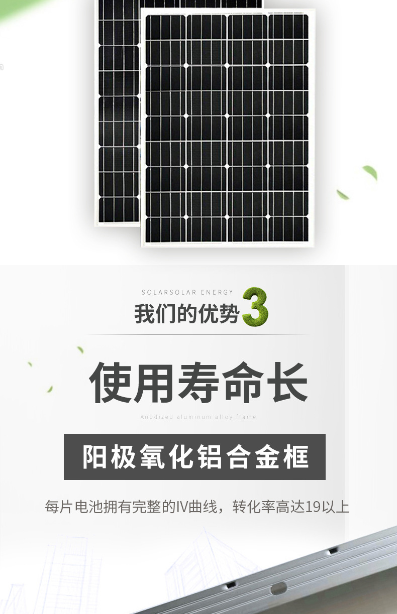12V monocristalino 30W panel de energía solar 50W hogar 100W módulo fotovoltaico 200W panel recargable 18V