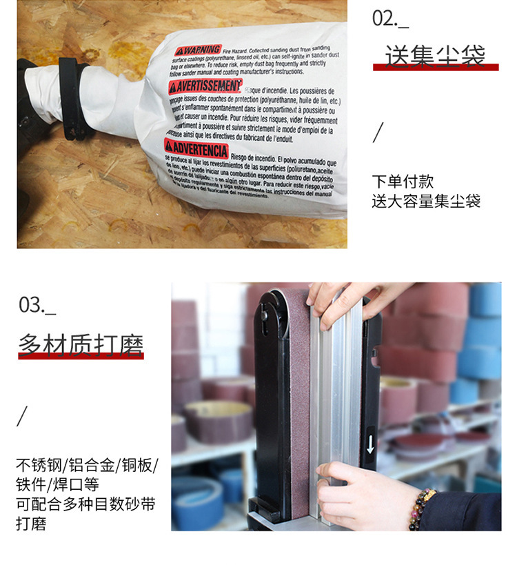 Placa de arena máquina de cinta abrasiva máquina de pulido de carpintería de grado industrial máquina de dibujo de alambre de metal pequeña máquina de molienda de papel de lija de escritorio
