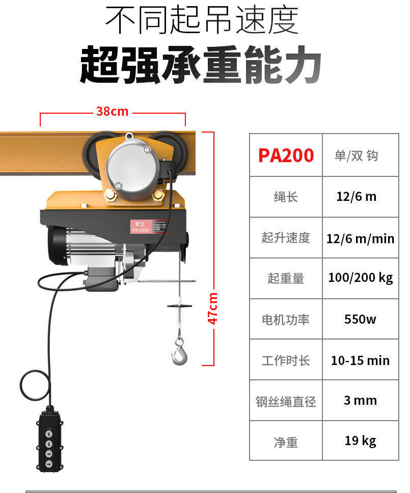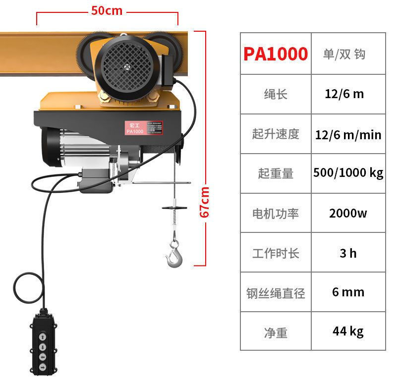 Mini elevadora eléctrica 220V grúa doméstica pequeña grúa de 0,5 toneladas con elevador de viaje de automóvil deportivo grúa aérea