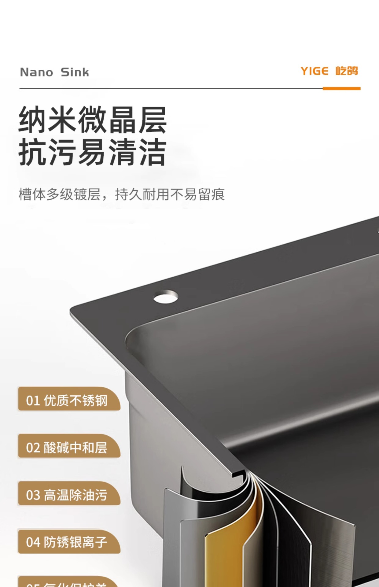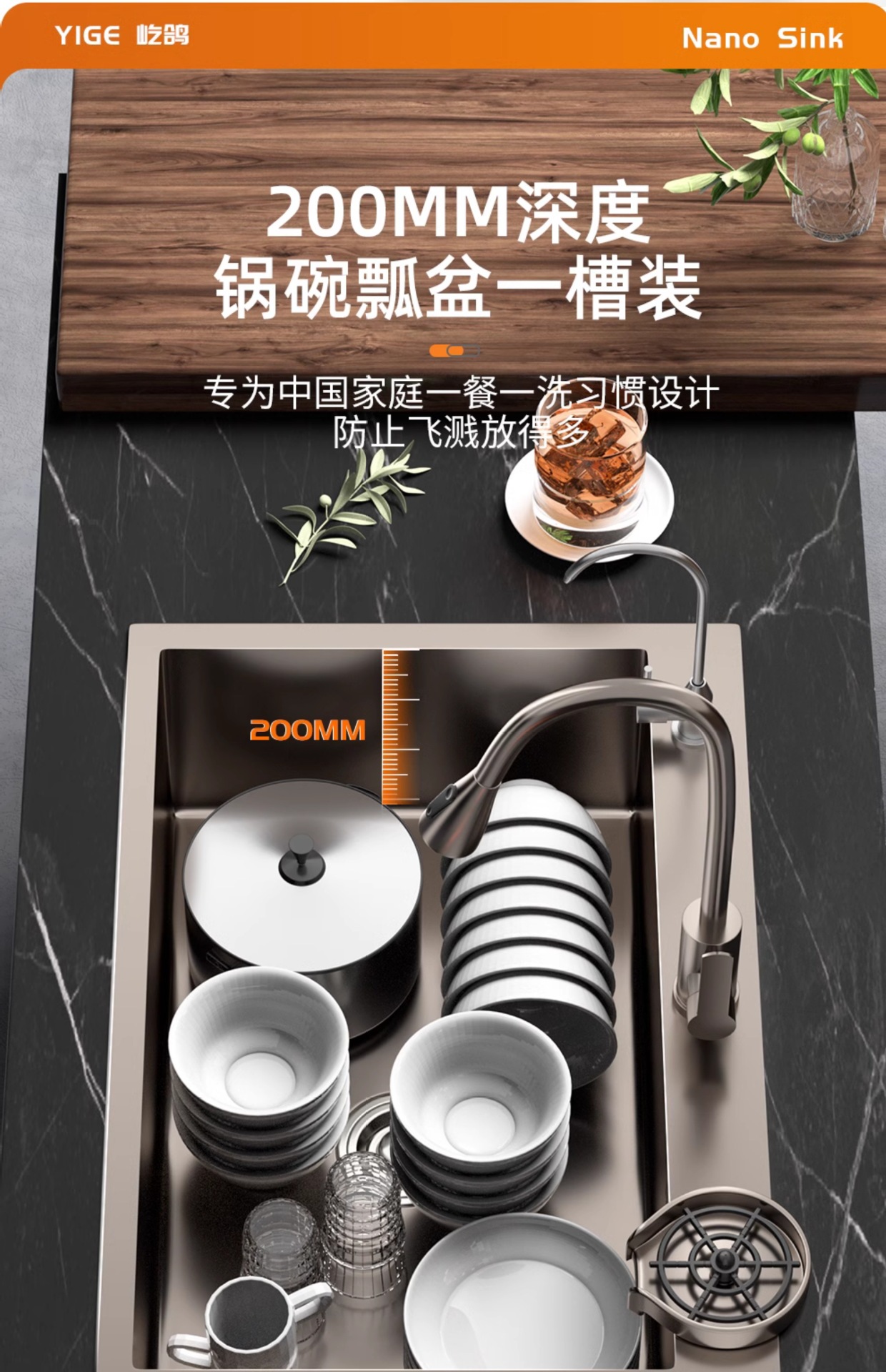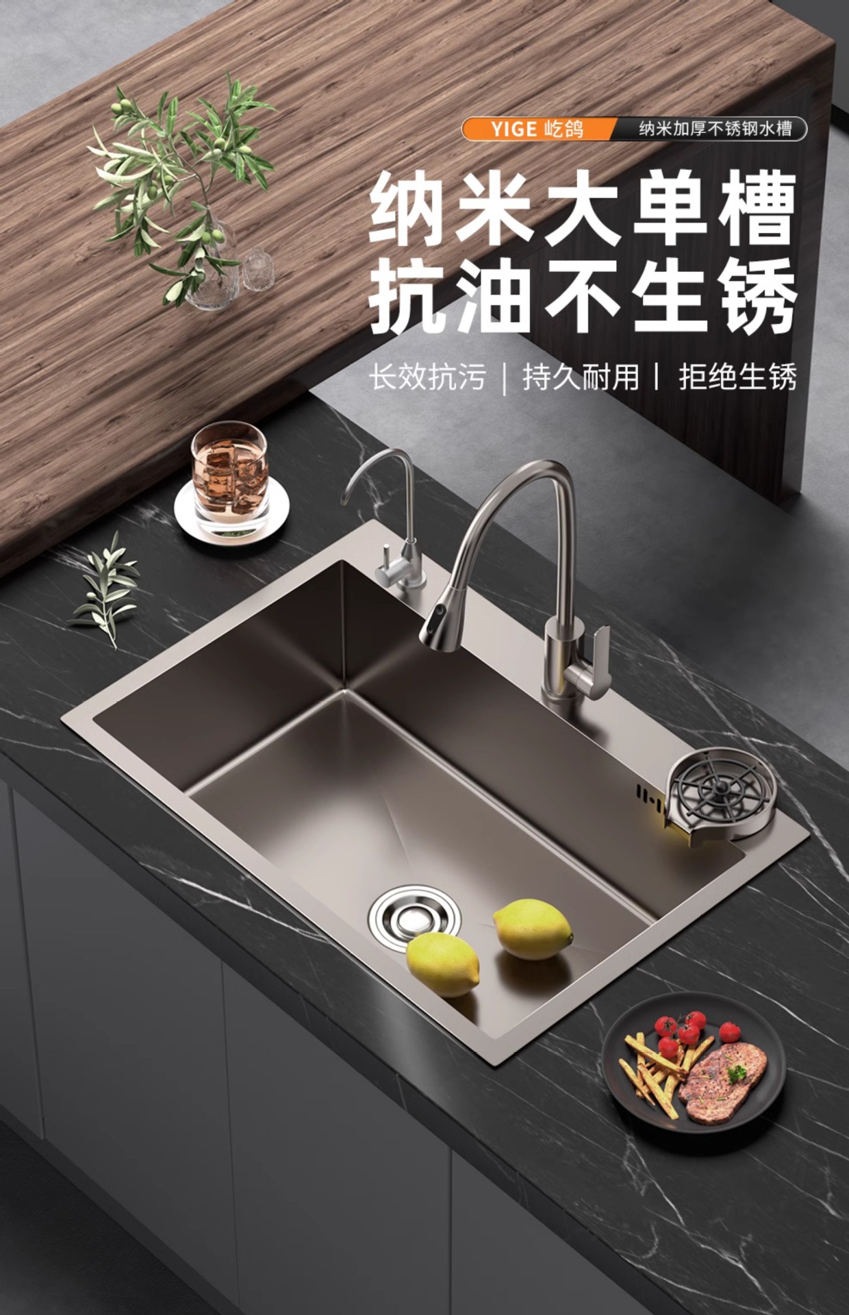 SUS cocina acero inoxidable nano espesado lavabo gran tanque único lavabo doméstico lavabo