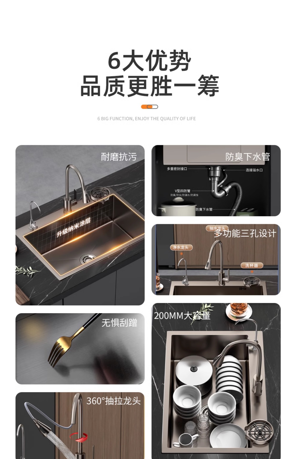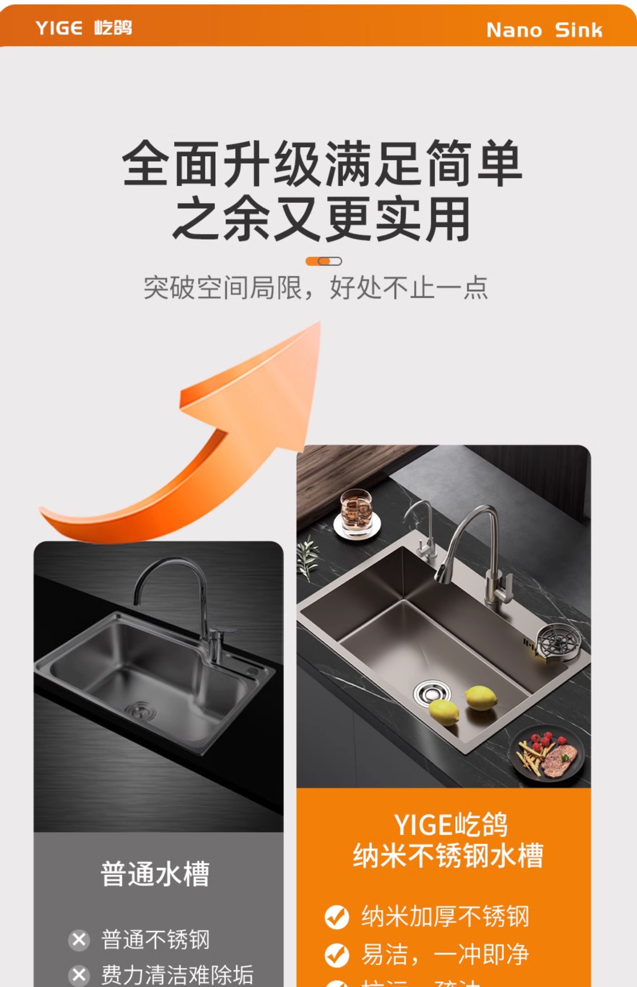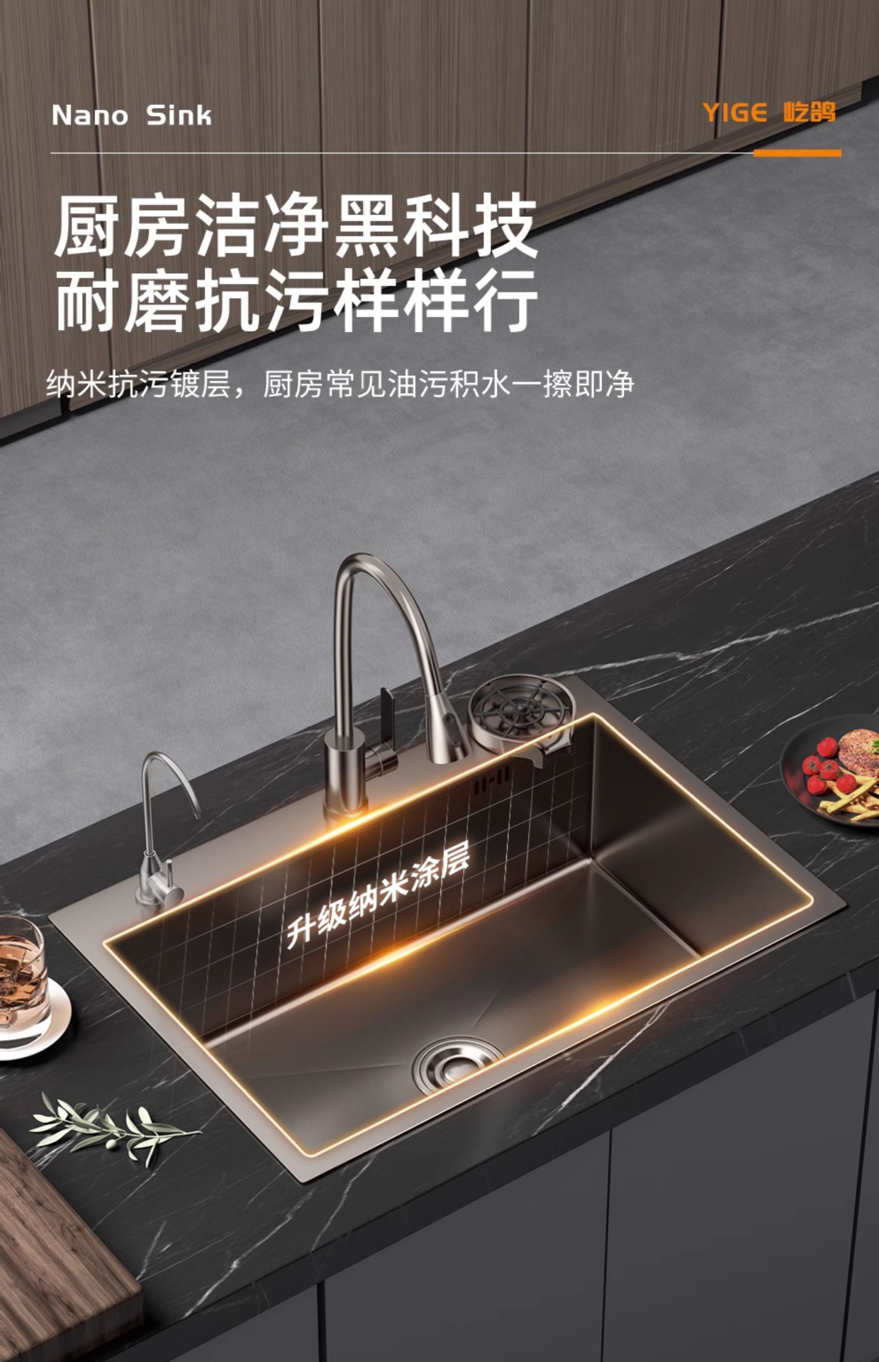 SUS cocina acero inoxidable nano espesado lavabo gran tanque único lavabo doméstico lavabo