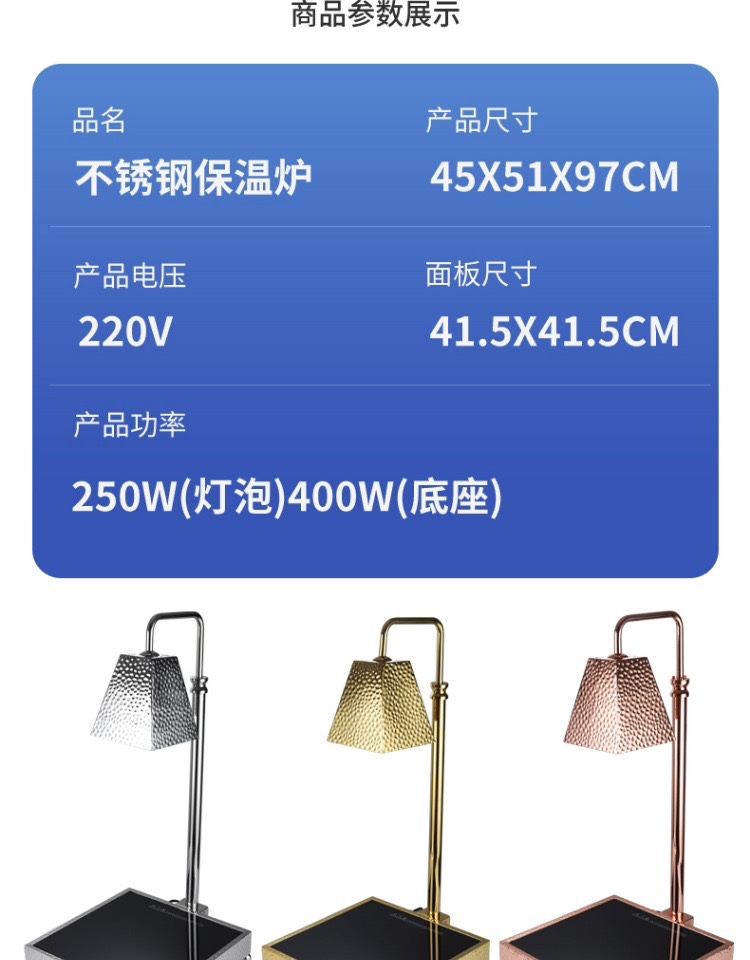 Lámpara de aislamiento de alimentos de buffet lámpara de calefacción de alimentos de restaurante lámpara de calefacción de mesa de calefacción de alimentos de restauración lámpara de barbacoa hotel comercial