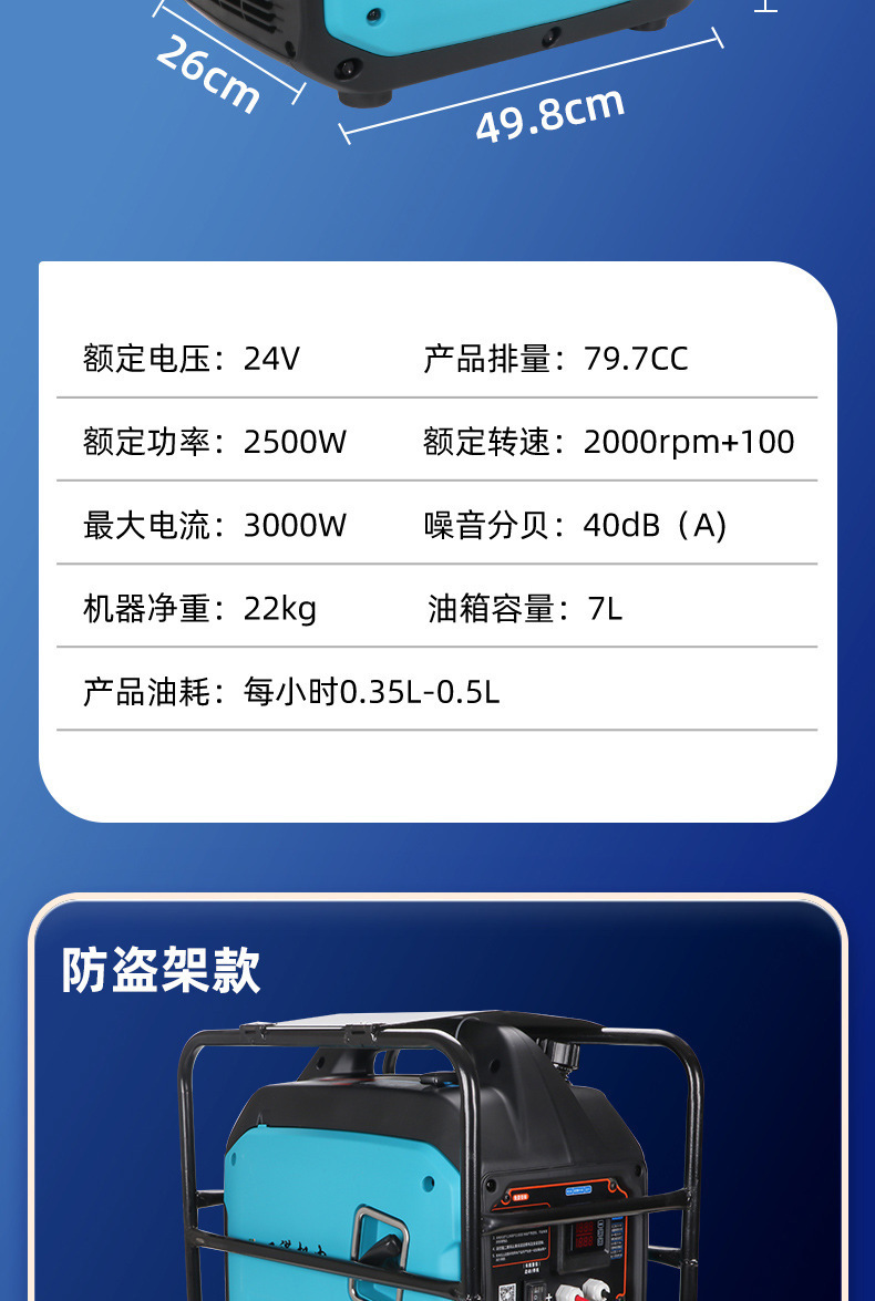 24V generador de estacionamiento aire acondicionado 12V gasolina portátil conveniente auto-inicio y parada silencioso DC de alta potencia