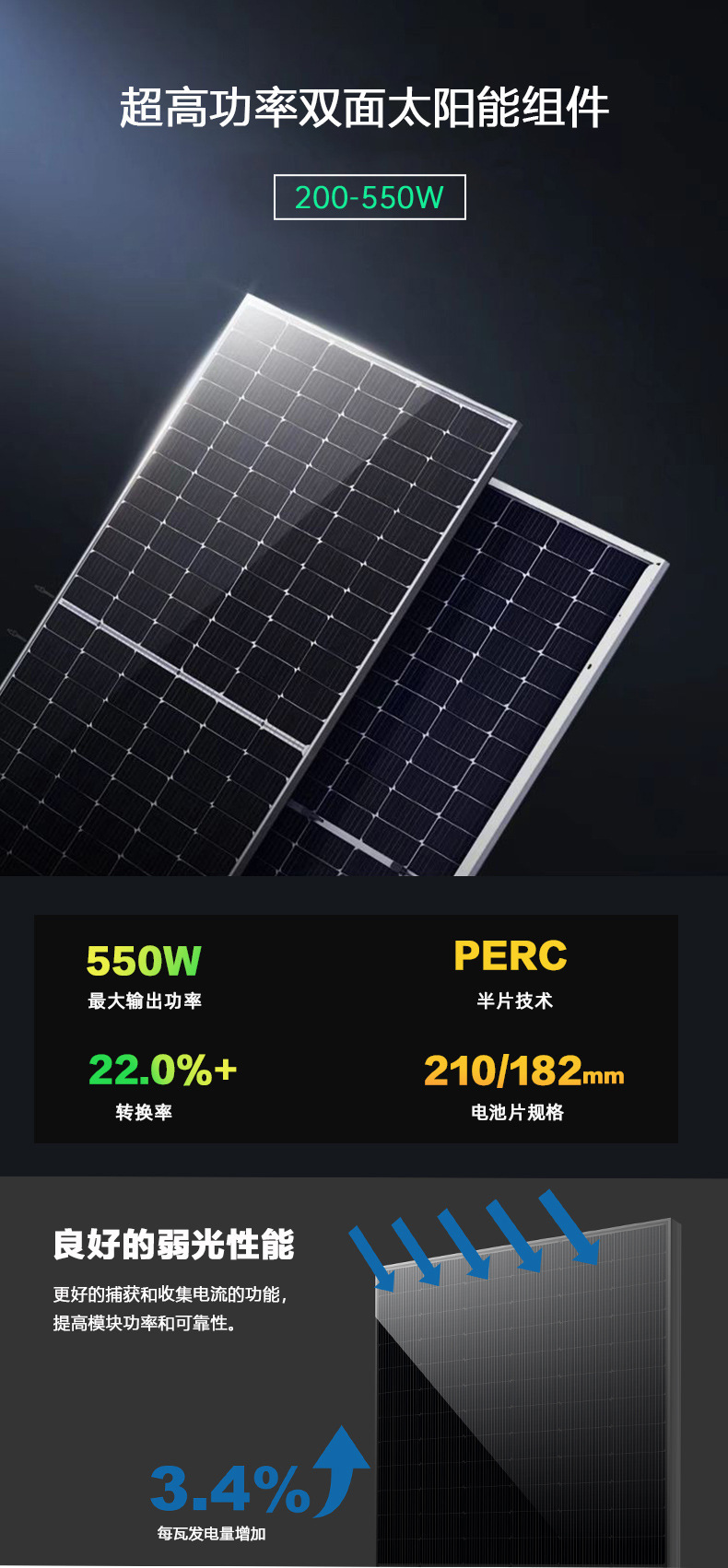 | Especificaciones y modelos | 18v200 W monocristalino ((1580 * 808mm), 36v200 W monocristalino ((1580 * 808mm), 18v200 W monocristalino (1200 * 880mm), 36v200 W monocristalino (1200 * 880mm), 18v50w monocristalino (670mm * 530mm), 18v80w monocristalino (830mm * 550mm), 18v100 W monocristalino (1200mm * 550mm), 18v100 W monocristalino (1010 * 540mm), 18v1350mm monocristalino (1200mm * 670mm), 18v150 W monocristalino (1010 * 540mm), 18v1800mm * 670mm)monocristalino (1480mm * 670mm), monocristalino 18v190w (1580mm * 670mm), monocristalino 18v250 W (1380mm * 990mm), monocristalino 12v300w (1705 * 880mm), monocristalino 24v300w (1705 * 880mm), monocristalino 18v300w (1640mm * 992mm), monocristalino 36v300w (1960 * 990mm), monocristalino 36v350 W (1960 * 990mm), monocristalino 200m de doble cara de vidrio único (1580 * 710mm), monocristalino 300m de doble cara de vidrio único (1722 * 776mm), monocristalino 400m de doble cara de Vidrio único (1960 * 889mm), monocristalino de doble cara de vidrio único 450mm(1722 * 1134mm), 500M de vidrio único y doble cara (1910 * 1134mm) |