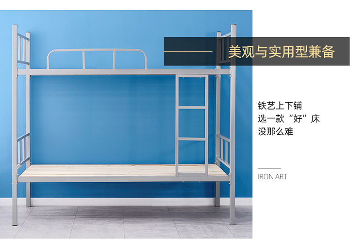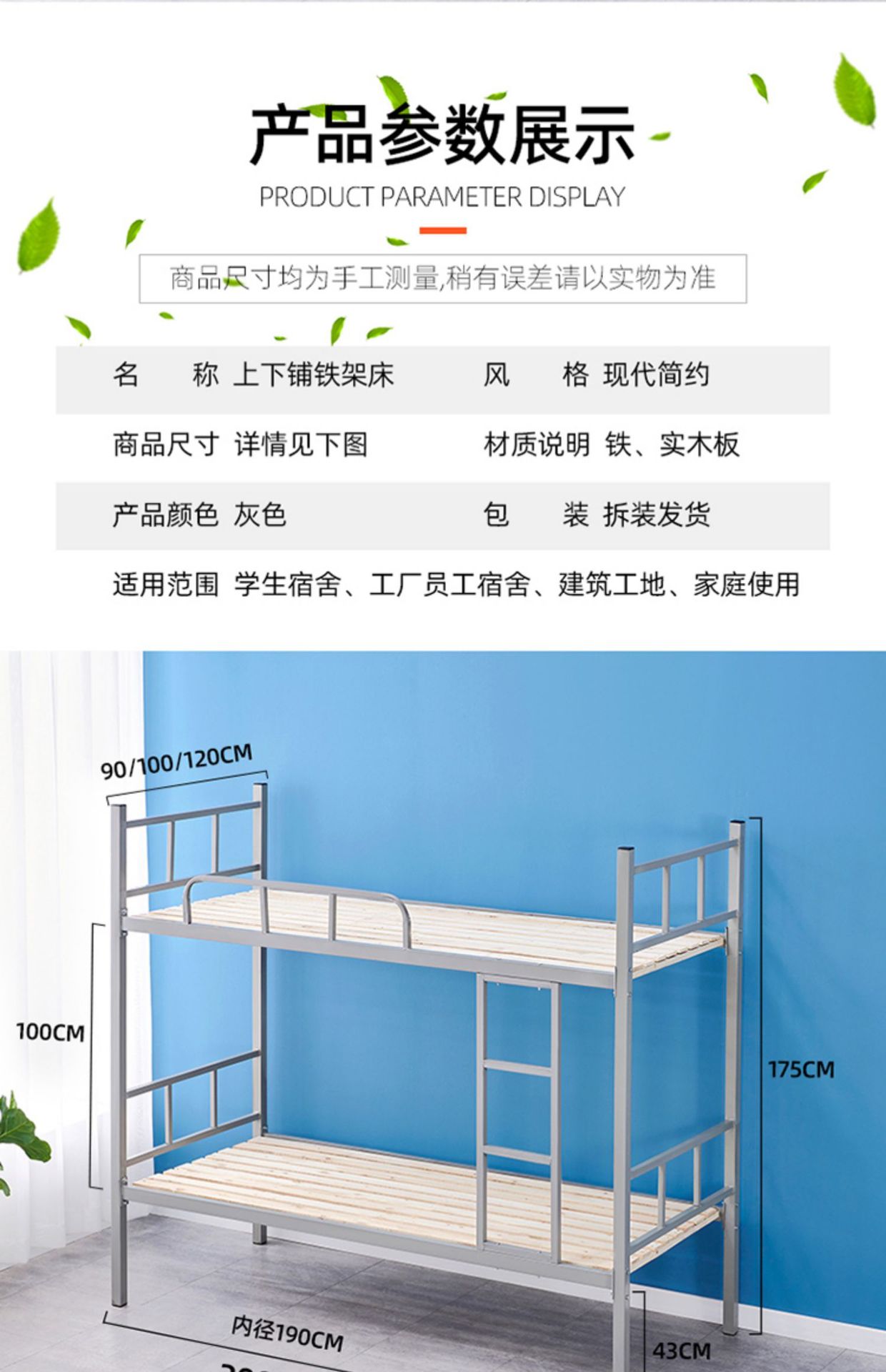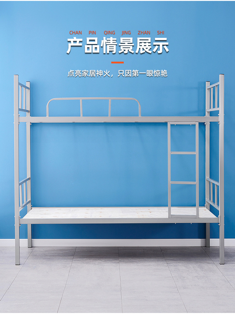 Cama de hierro superior e inferior Cama de dormitorio de personal Cama de doble capa Cama de alumno individual Cama de doble capa Cama de marco de hierro Cama de doble capa