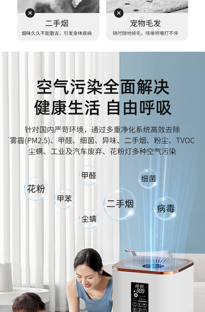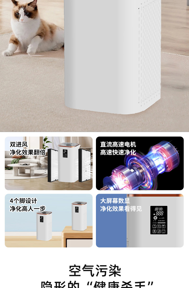 Purificador de aire de doble entrada de aire libre de envío doméstico para eliminar el olor del humo de segunda mano de fumos de gato en interiores