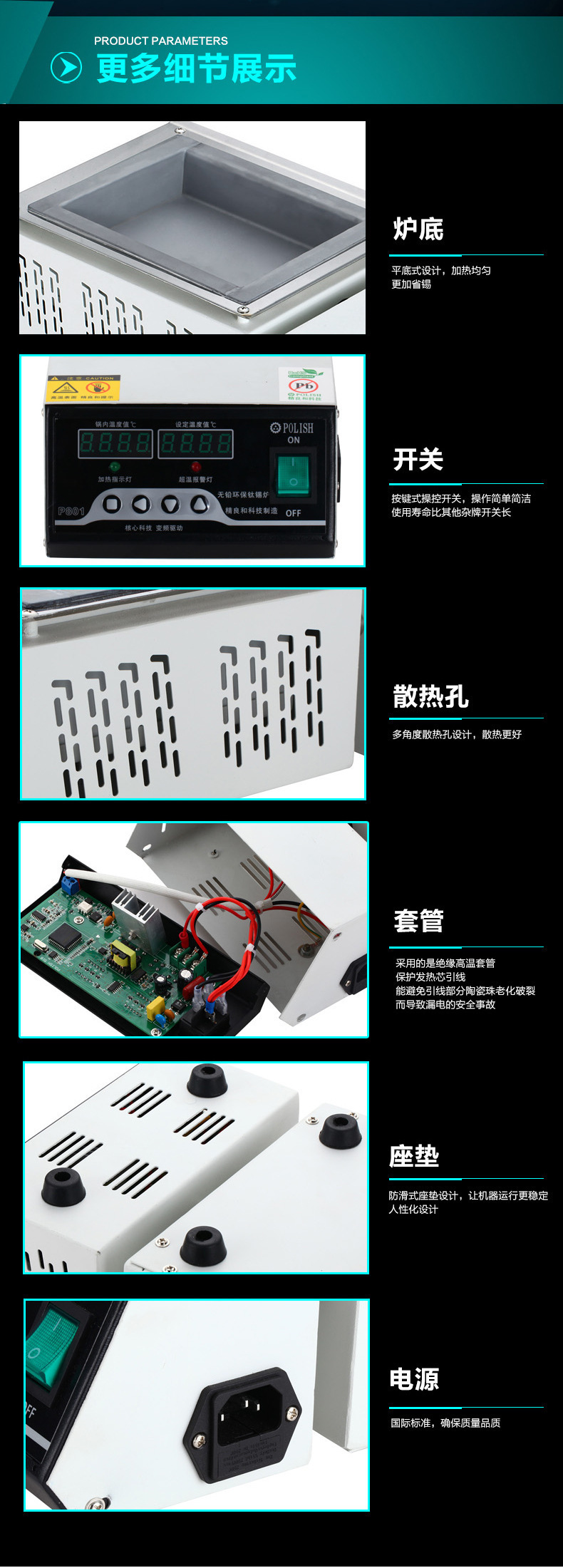 Horno de estaño de titanio puro sin plomo horno de estaño de fundición cuadrado horno de soldadura sin plomo horno de visualización digital horno de soldadura de temperatura ajustable