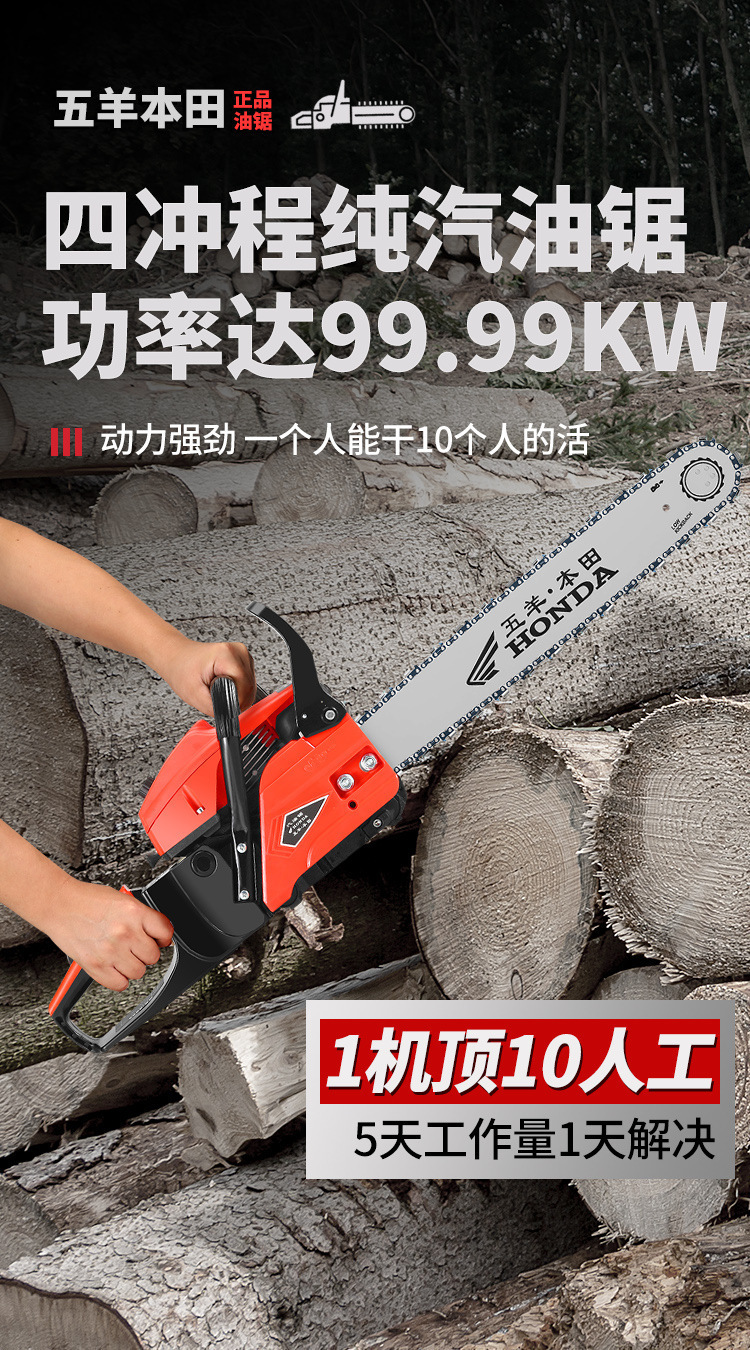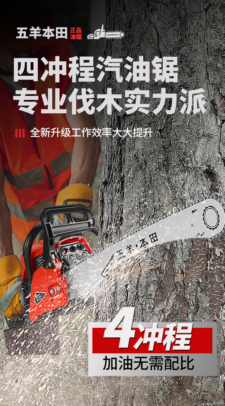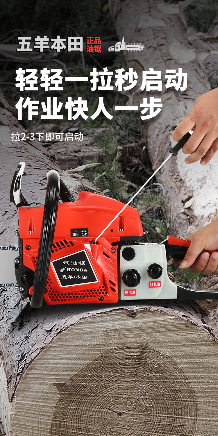 Wuyang Honda de alta potencia de cuatro tiempos sierra de gasolina sierra de gasolina doméstica importación sierra de madera pequeña sierra de cadena eléctrica de mano