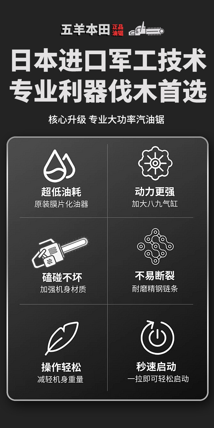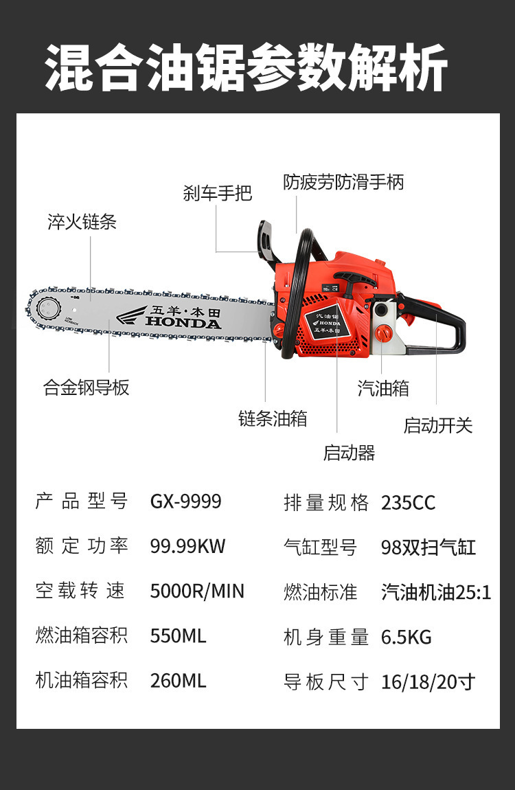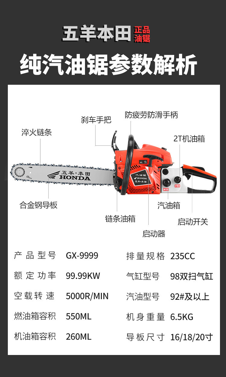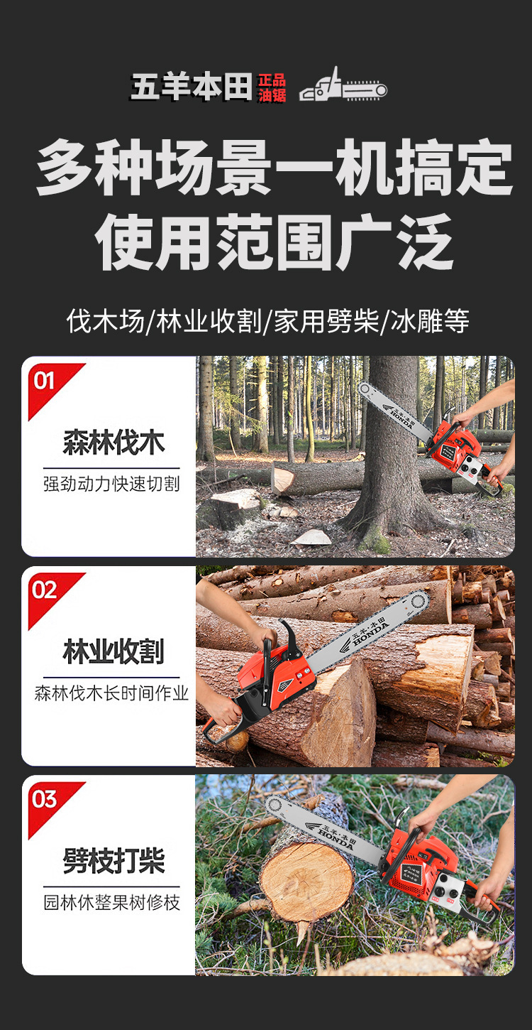 Wuyang Honda de alta potencia de cuatro tiempos sierra de gasolina sierra de gasolina doméstica importación sierra de madera pequeña sierra de cadena eléctrica de mano