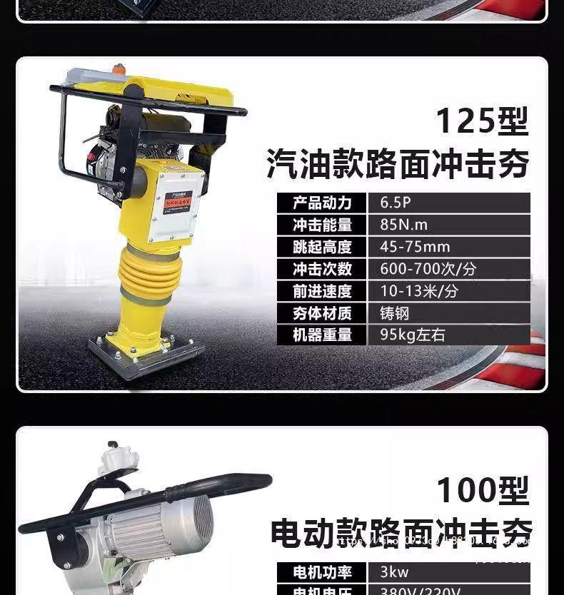 | Especificaciones | 100 tipo de compactación de impacto de gasolina nacional, 100 tipo de compactación de impacto de diesel 168, 100 tipo de compactación de impacto de diesel 173, placa de compactación |