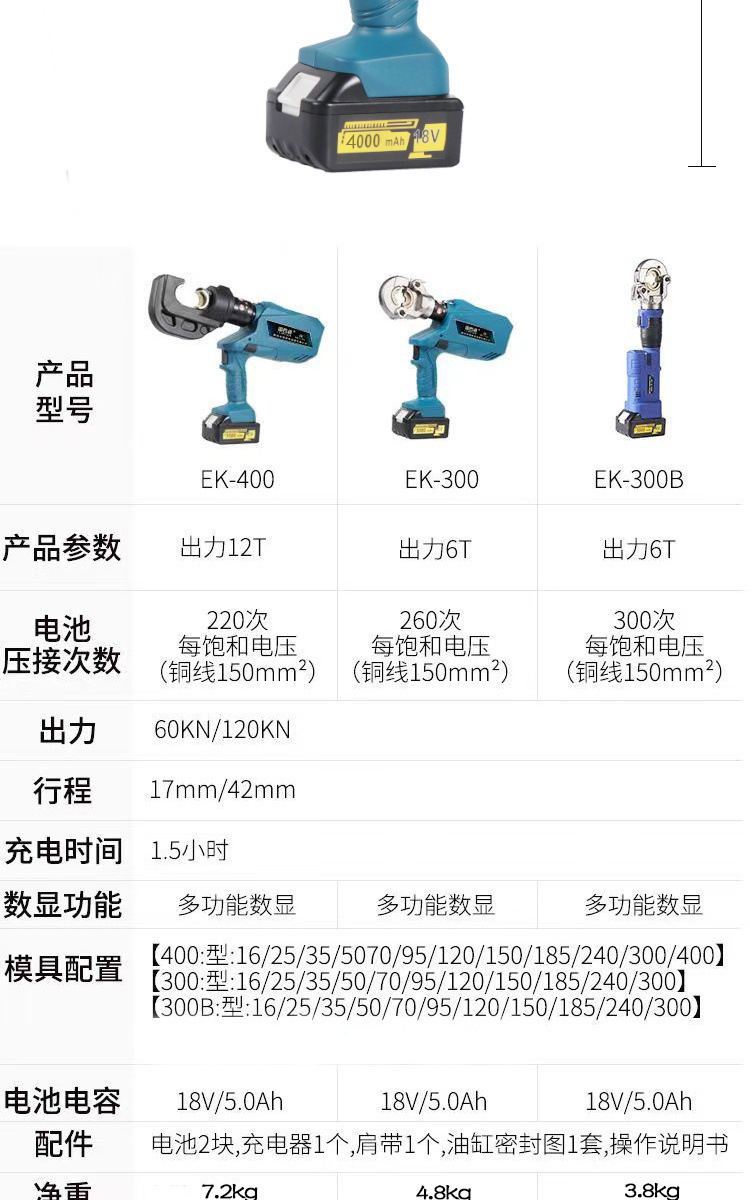 | Especificaciones y modelos | Modelo de visualización digital 300, modelo de visualización digital 300 crimpado continuo, modelo de visualización digital 400, modelo de visualización digital 400 crimpado continuo, 240 modelo de visualización digital ultraligero retorno automático de aceite, modelo de visualización digital ultraligero 300D retorno automático de aceite, modelo de visualización digital mini 300C, modelo de visualización digital 300C / 40C 2 - en - 1, modelo de visualización digital 240 / 40C 2 - en - 1, modelo industrial ez300 con pantalla de visualización digital, modelo de visualización digital industrial ez300 prensado continuo, mango recto 300B modelo de visualización digital pinzas hidráulicas eléctricas, Mango recto 300B dispositivo de visualización digital de presión continua pinza hidráulica eléctrica, 400B dispositivo de visualización digital de crimpado continuo, EK400 modelo industrial (con visualización digital), ez400 modelo industrial de presión continua con pantalla digital, visualización digital de crimpado continuo 630 dispositivo de visualización digital, mango recto 300B / 40C dispositivo de visualización digital de crimpado continuo 2 en 1, mango recto 300B / 65C dispositivo de visualización digital de crimpado continuo 2 en 1, dispositivo de visualización digital de crimpado continuo 300 / 40C 2 en 1, dispositivo de visualización digital de crimpado continuo 300 / 65C 2 en 1, dispositivo de visualización digital de crimpado continuo 300 / 65C 2 en 1, dispositivo de visualización digital de crimpado continuo 300 / 65C 2 en 1, dispositivo de visualización digital de visualización industrial de crimpado continuo, 400 / 85C 2 - en - 1 crimpado continuo, 400 / 105 2 - en - 1 crimpado continuo, tijeras de visualización digital 40C, tijeras de control remoto de visualización digital 40C |