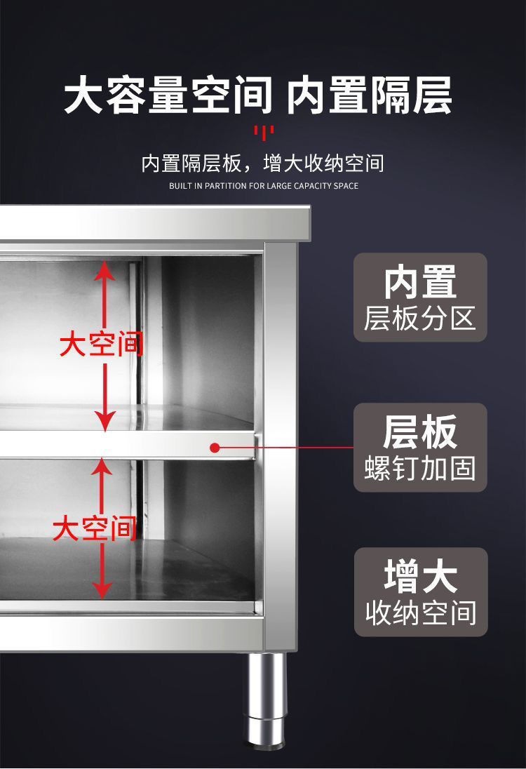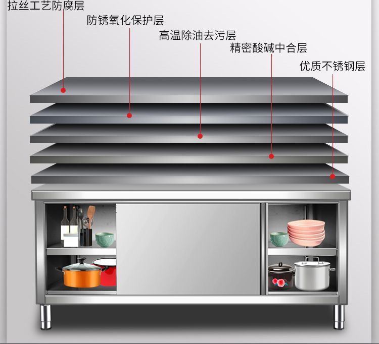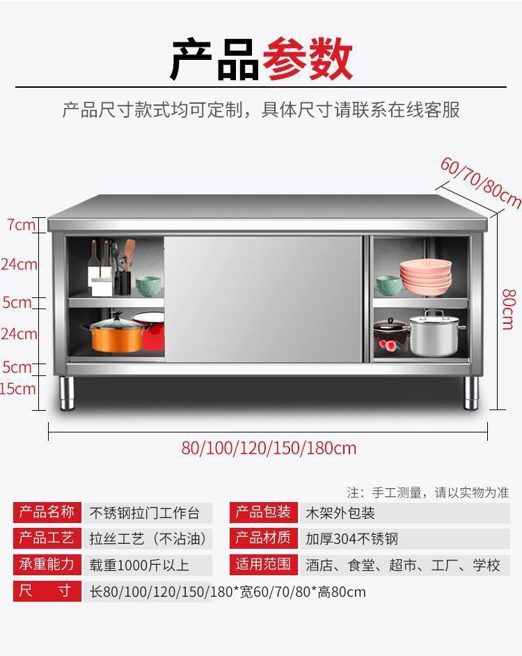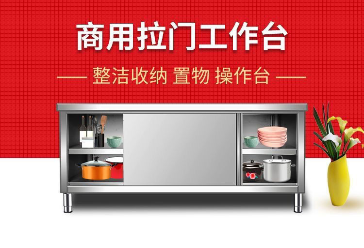 soldadura integral 304 mesas de trabajo de acero inoxidable cocina gabinete doméstico consola de operación hotel puerta corredera de platos