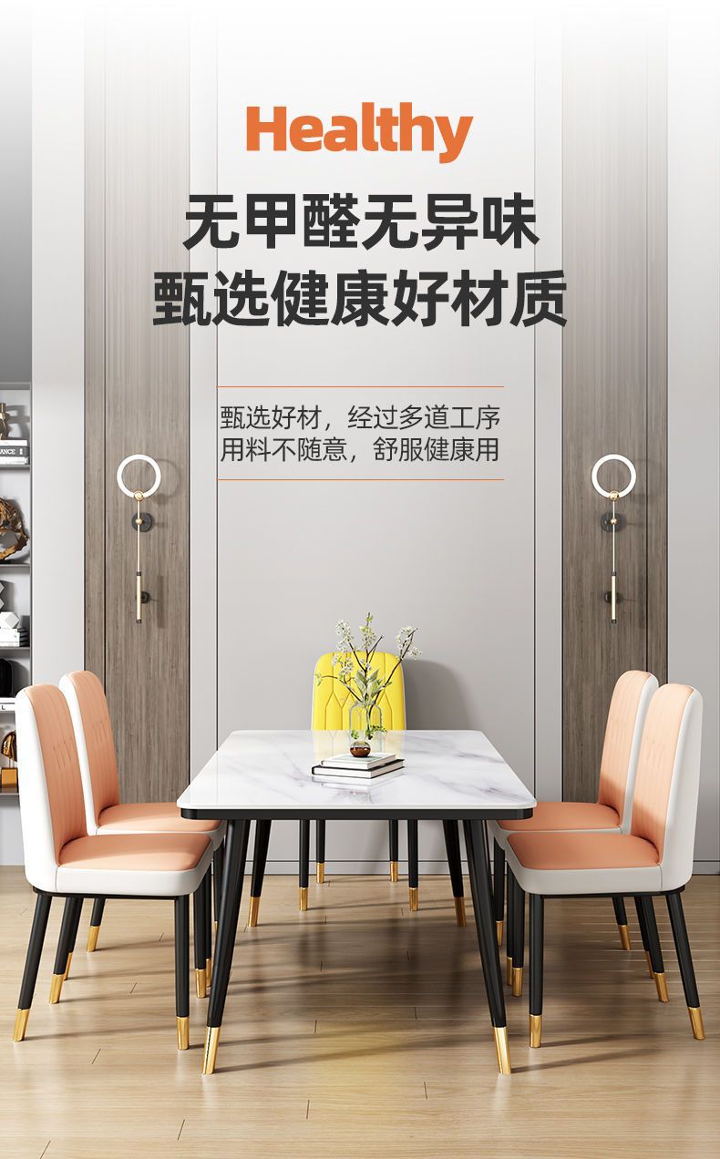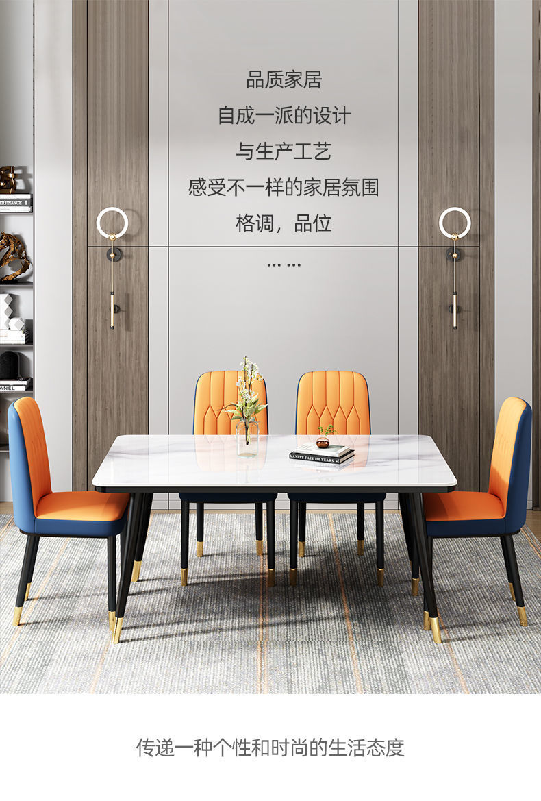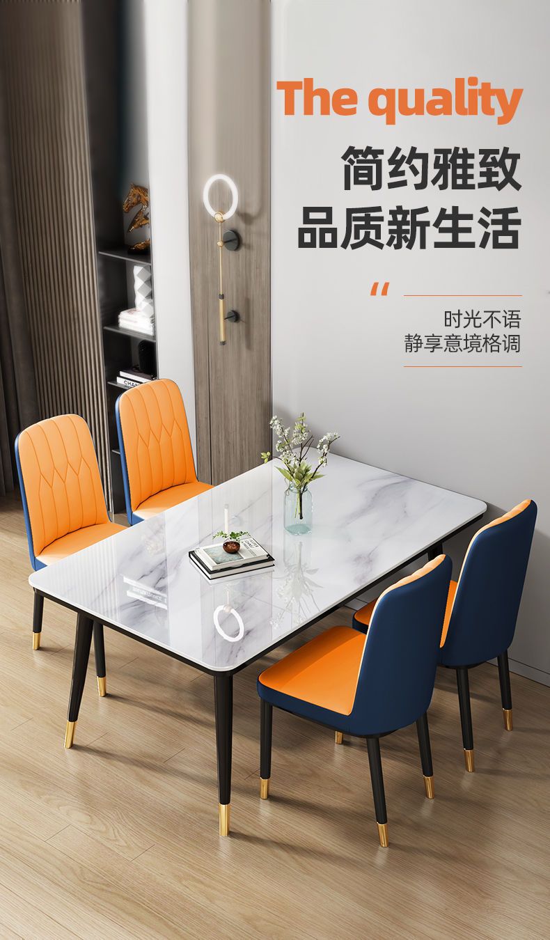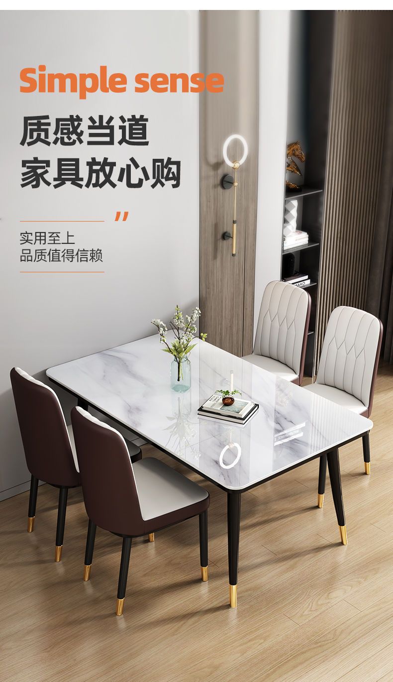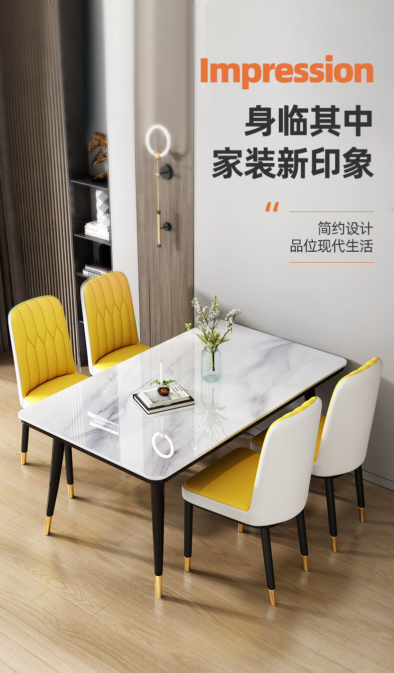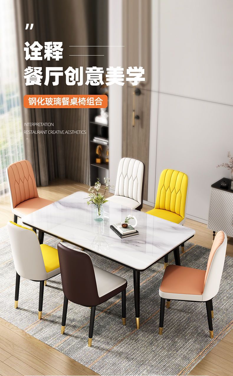 Mesa de comedor nórdica combinación de mesa de comedor doméstica de lujo ligera y simple mesa de comedor de vidrio templado imitación de mesa de comedor de mármol