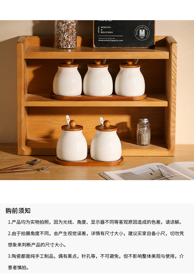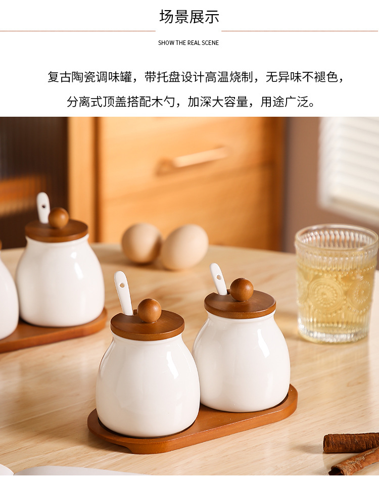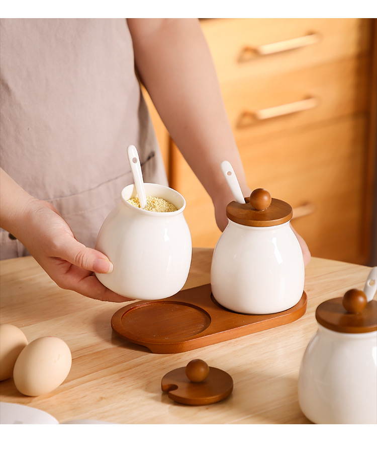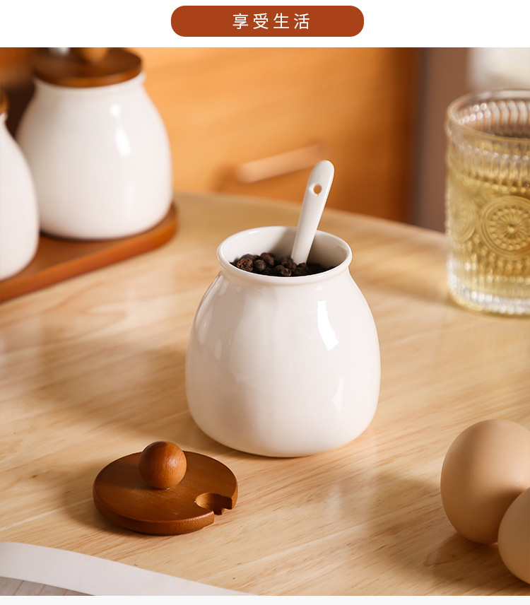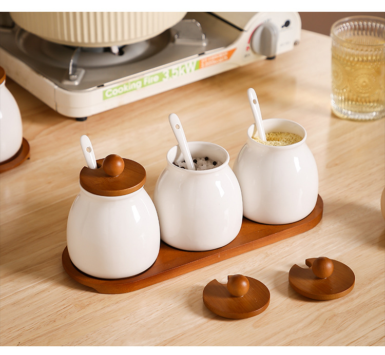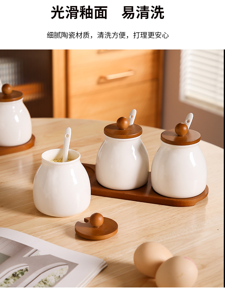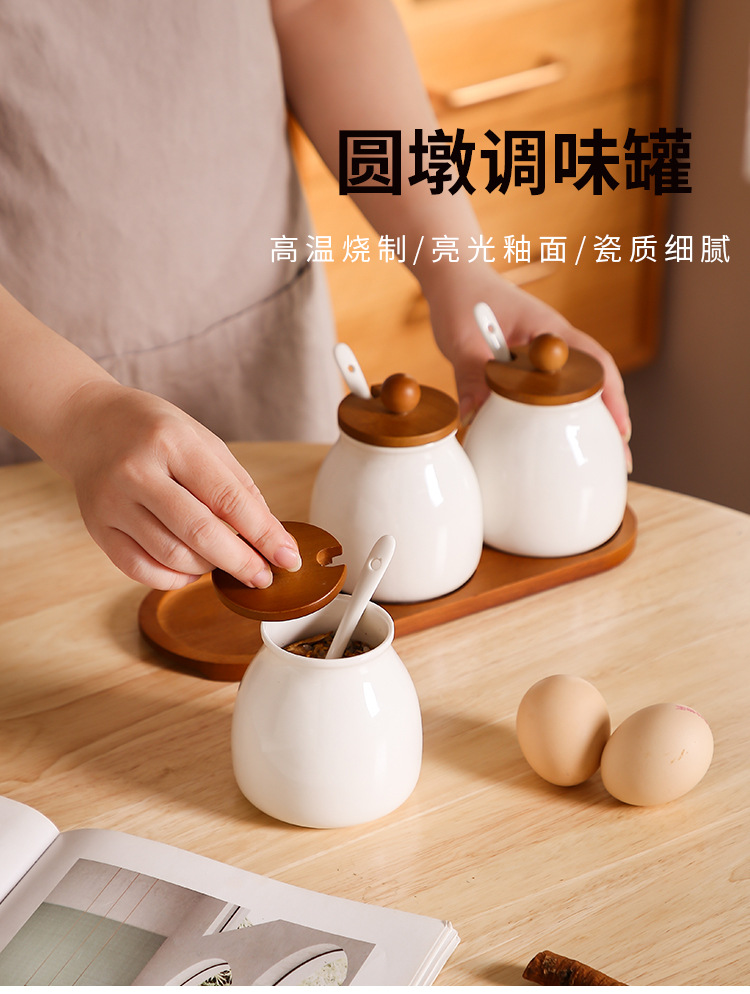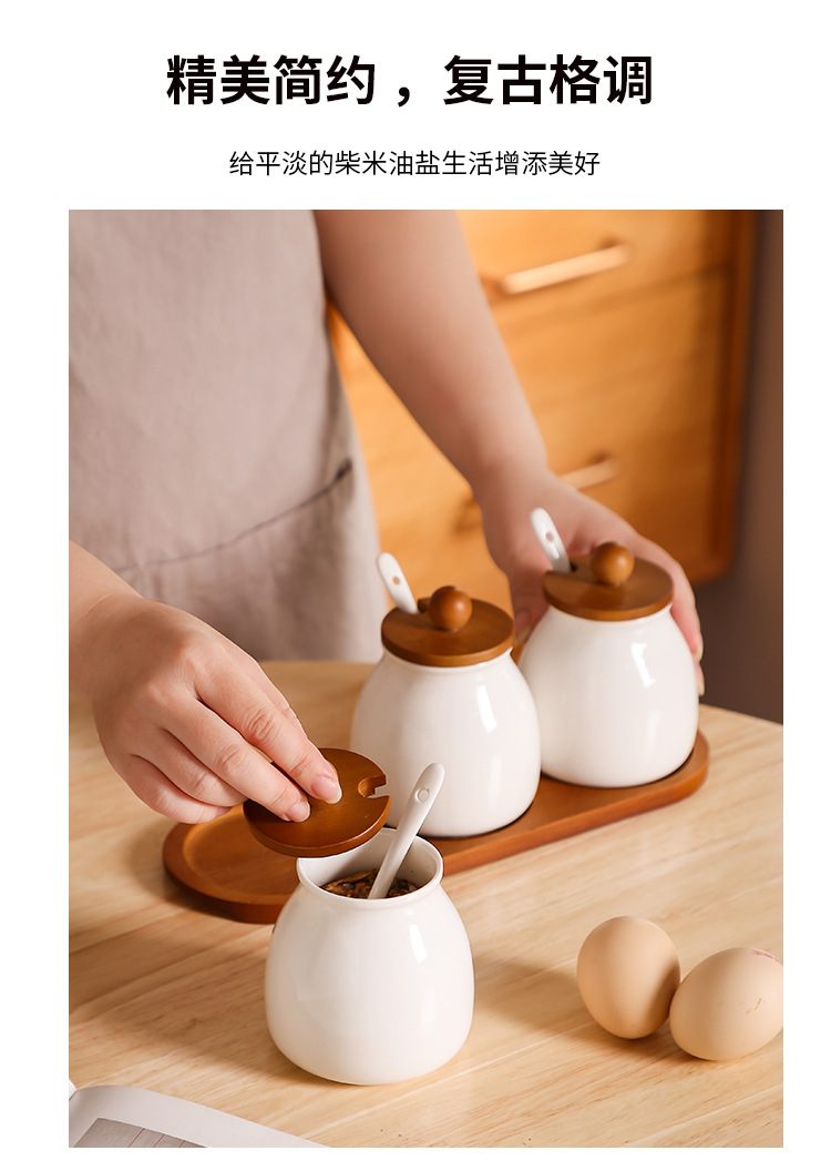 Tanque de condimento de cocina caja de condimento doméstica lata de sal botella de condimento de cerámica lata de condimento combinación conjunto de frasco de arroz y frasco de arroz