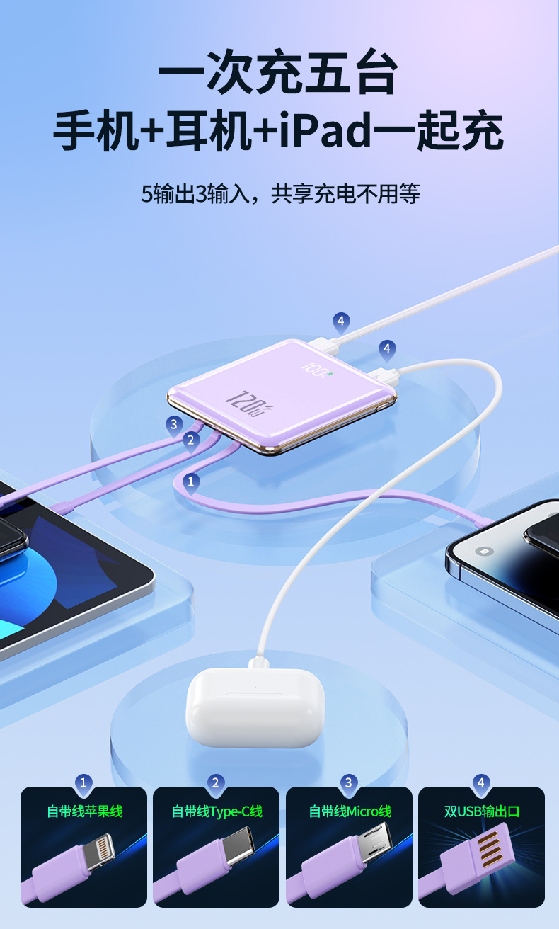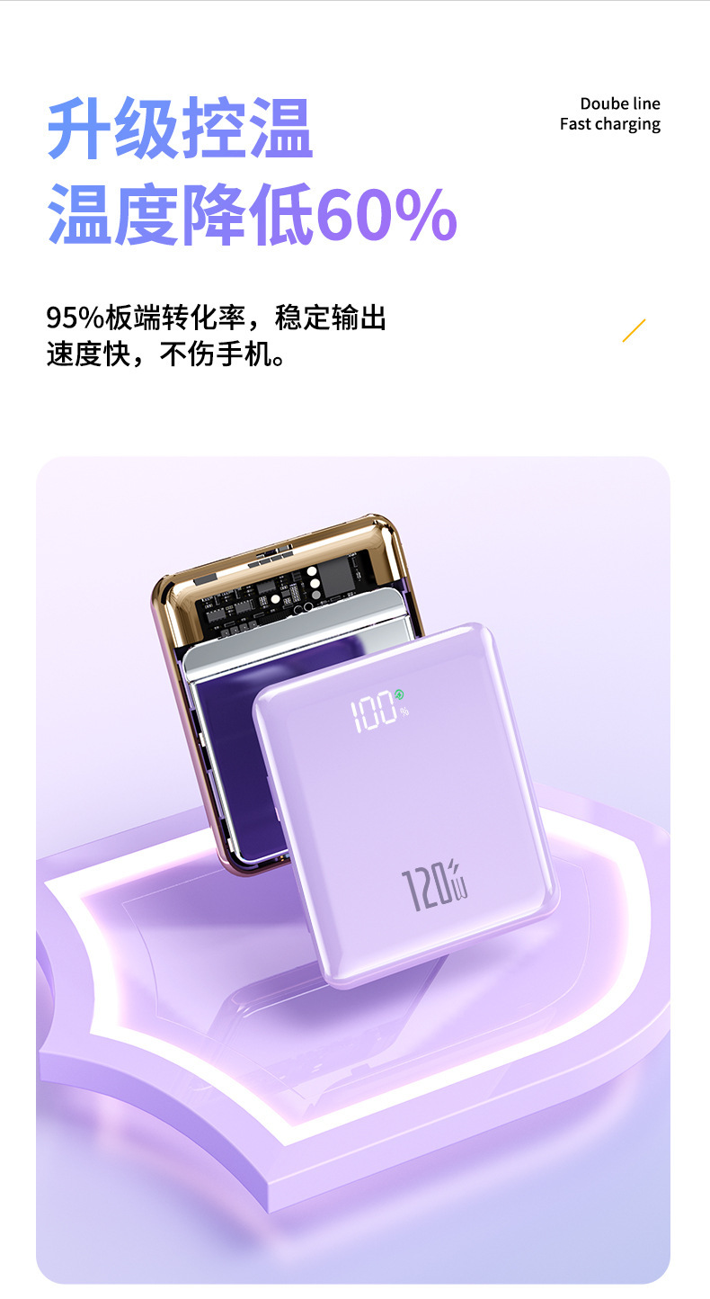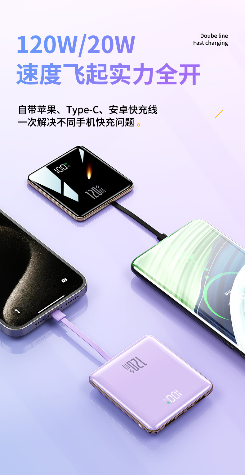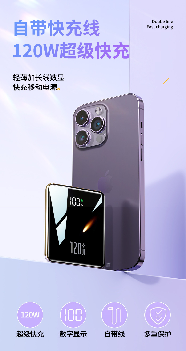 Certificación 3C 120W Super Fast Charger Pao 20000 mAh con cable de gran capacidad, fuente de alimentación portátil compacta