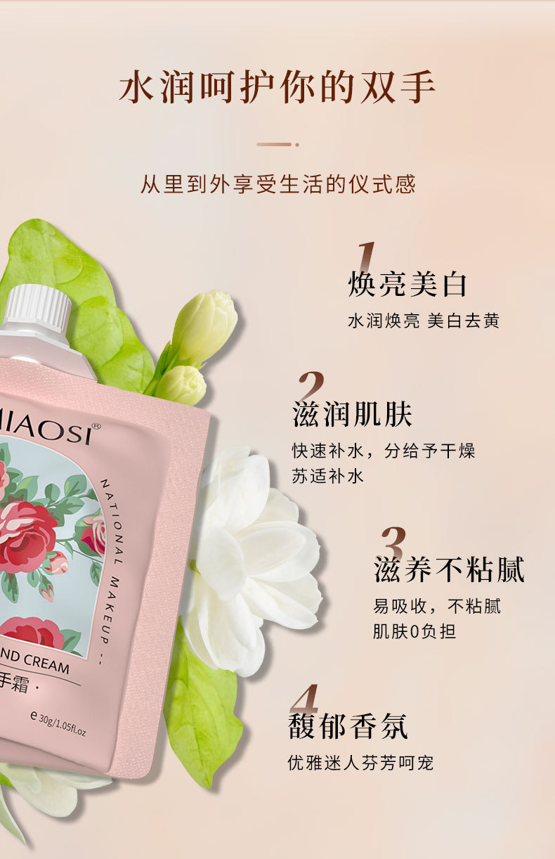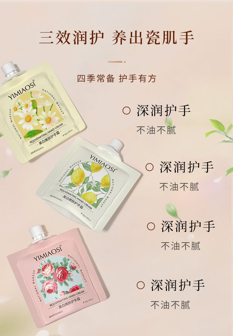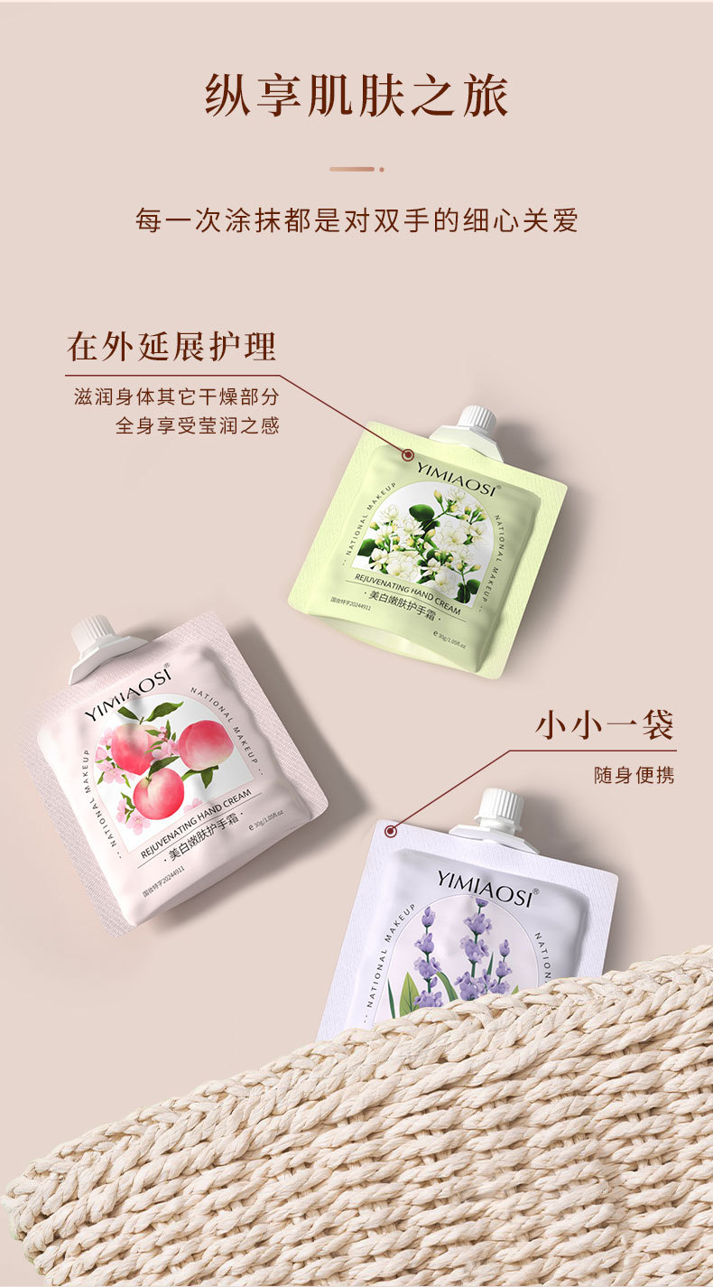 YIMIAOSI blanqueamiento piel rejuvenecedor crema de manos 30g fragancia floral fruta 10 sabor hidratante al por mayor