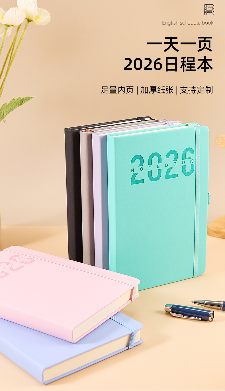 Calendario en español de 2026 Gestión del tiempo en inglés Autodisciplina Plan de tarjetas perforadas Cuaderno de notas Subpersonalización