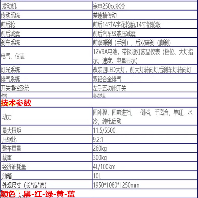 Vehículo de playa para adultos motocicleta todoterreno de cuatro ruedas de combustible Zongshen 250CC ATV refrigerado por agua bicicleta de montaña todo terreno