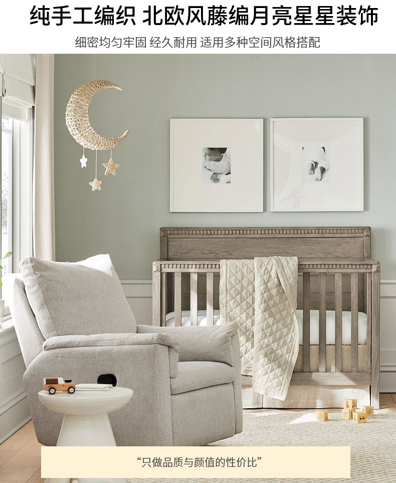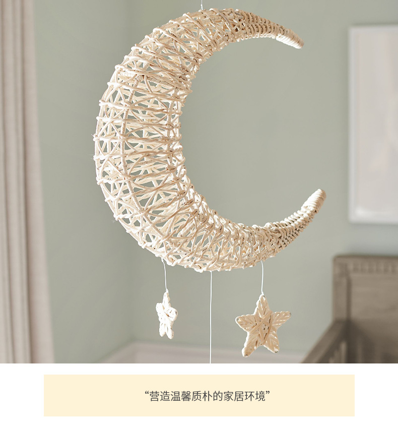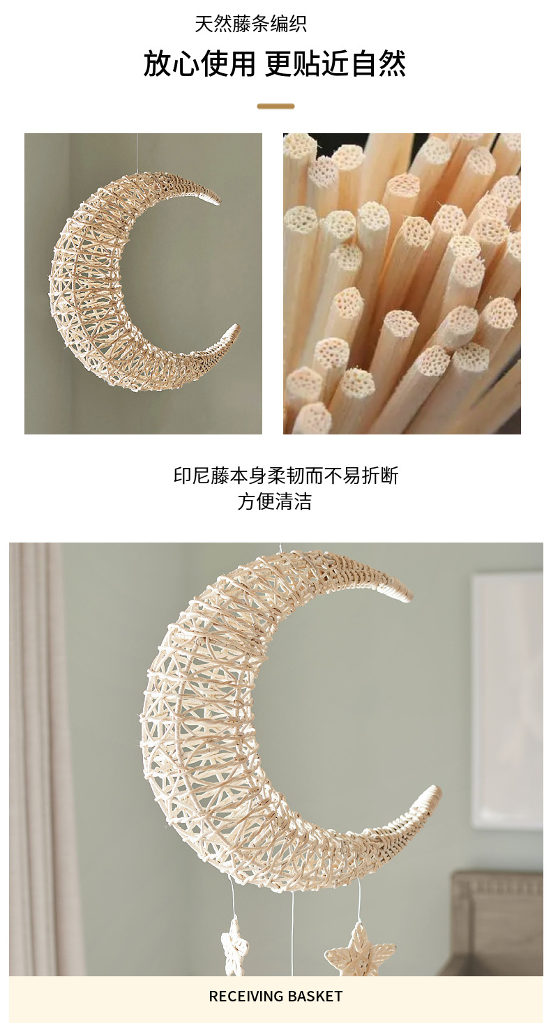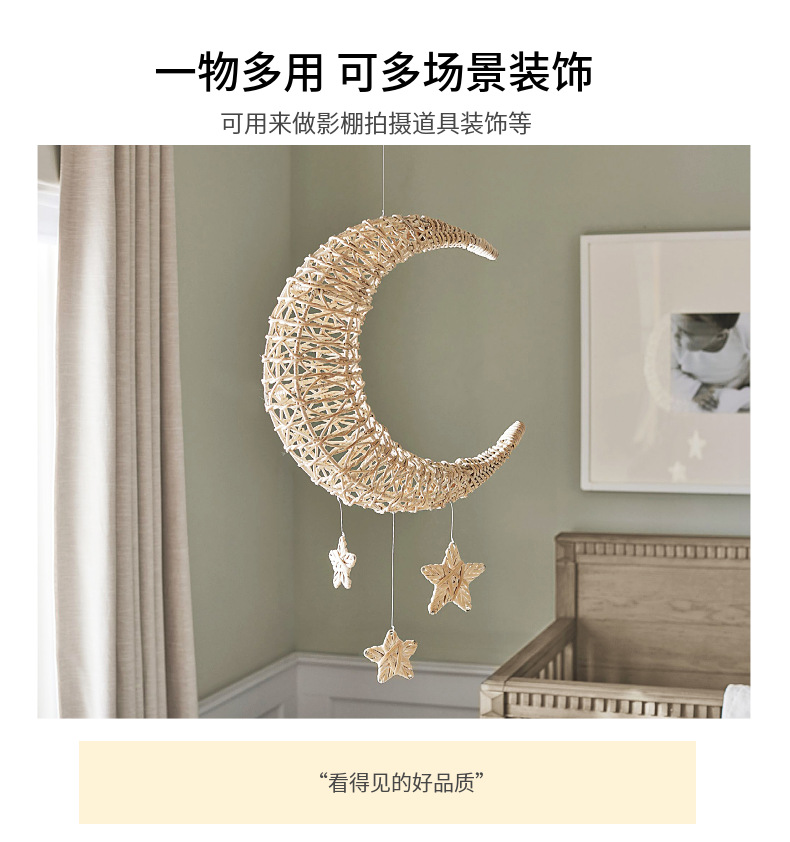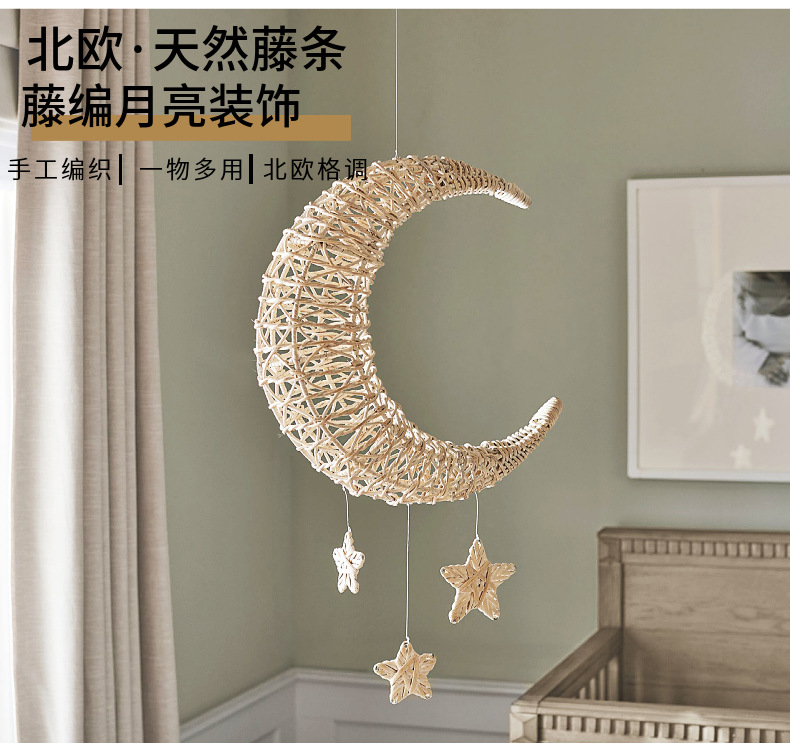 Paja de ratán de estilo nórdico tejida Luna en forma de estrella decoraciones para colgar en la pared accesorios de fotografía de habitación de los niños adornos para colgar en la pared