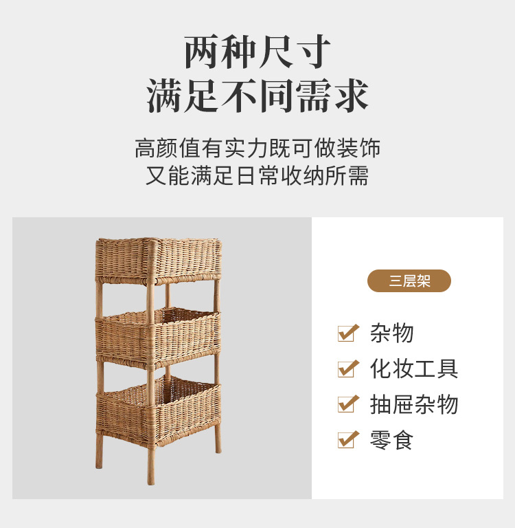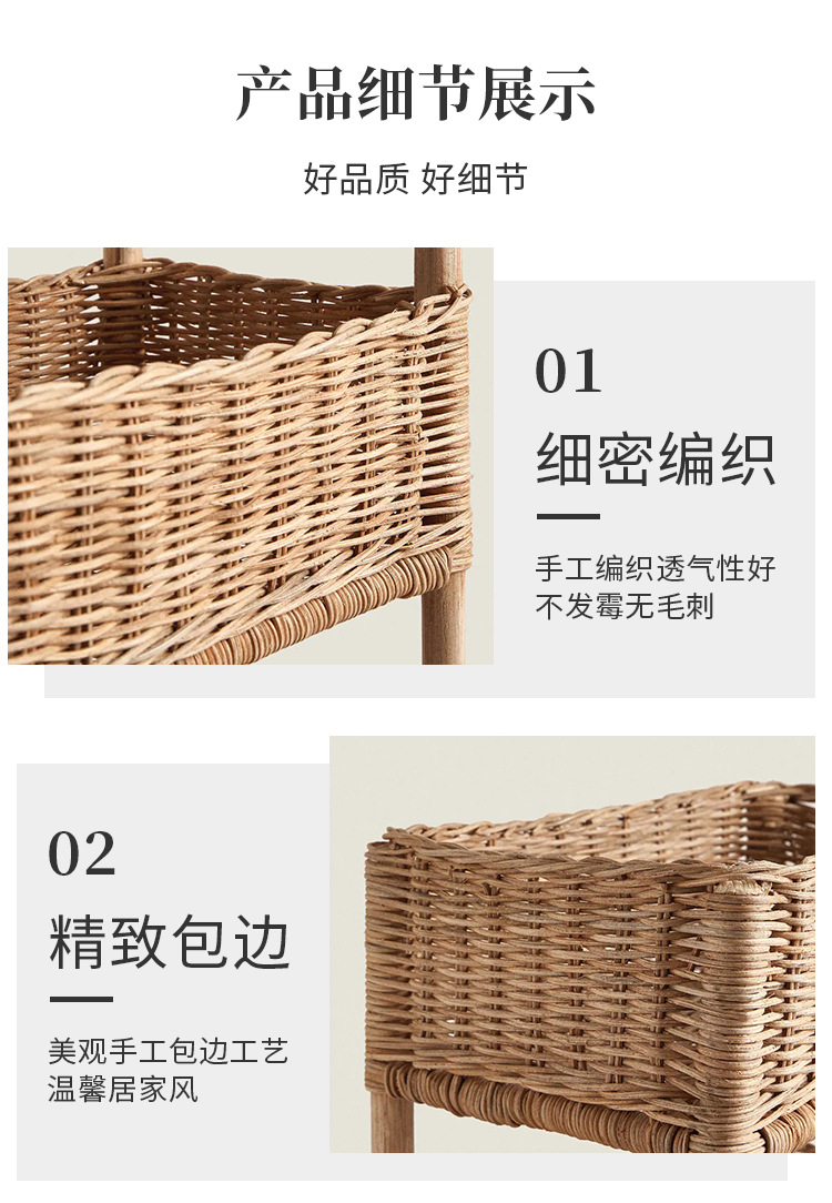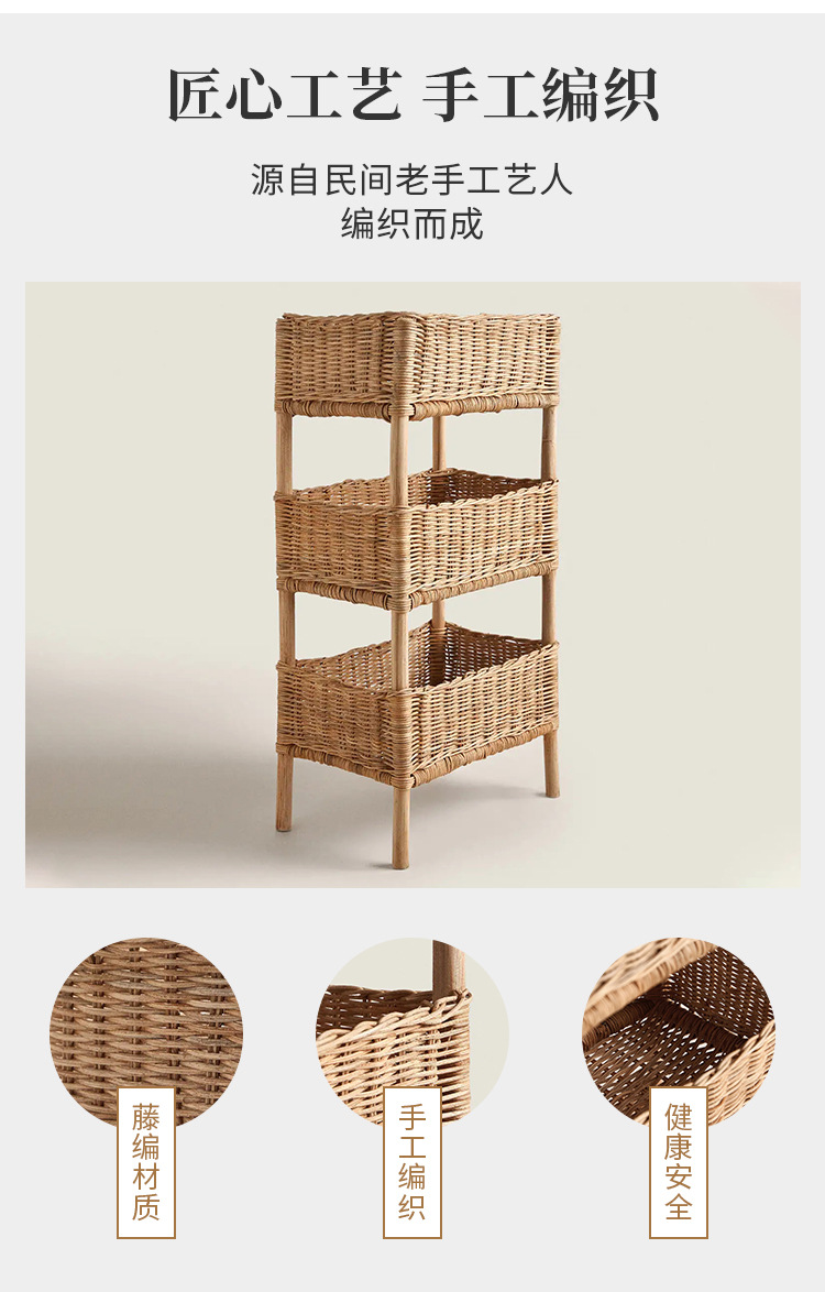 Rack de almacenamiento de ratán de piso de estilo de país decoración de cama y desayuno artículos diversos rack de almacenamiento de madera maciza tejida a mano cesta de almacenamiento de múltiples capas
