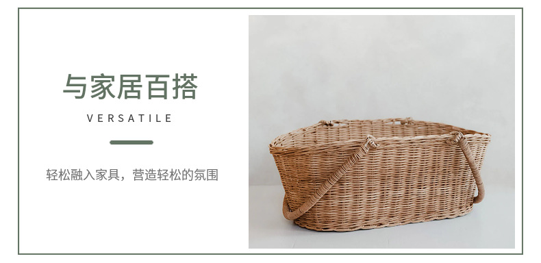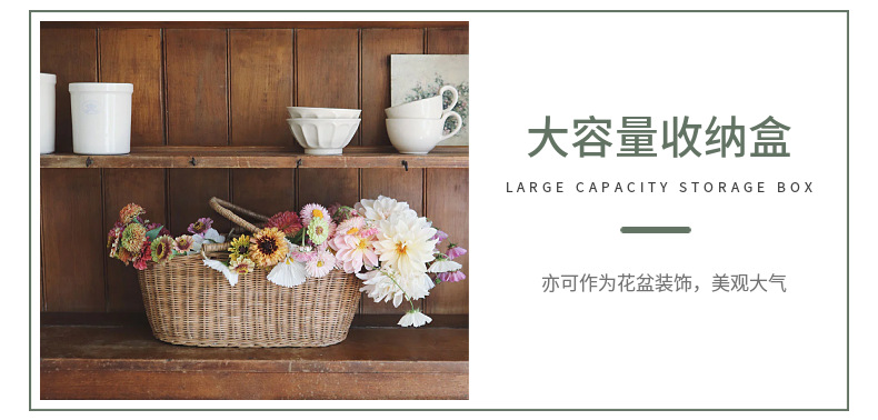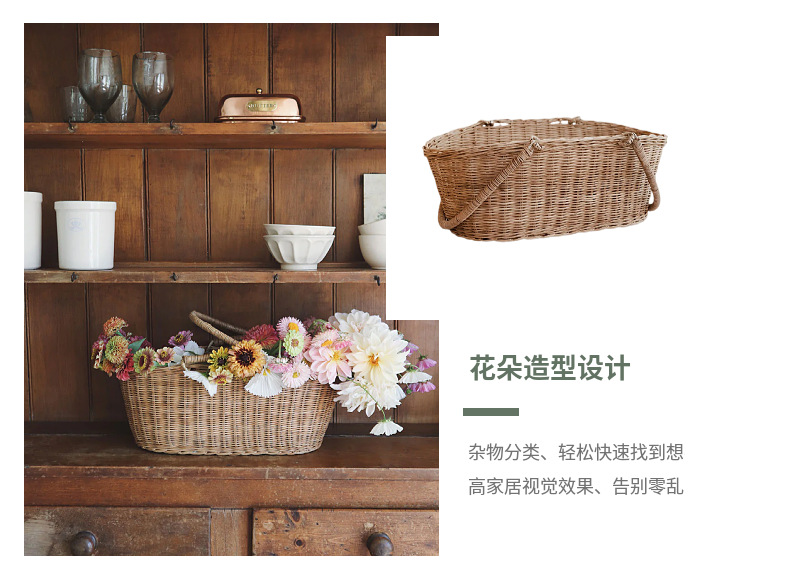 Cesta de mano tejida Cesta de ratán Cesta de ratán tejida de ratán real Cesta de flores de mano de flores de jardín retro Cesta tejida Cesta de verduras