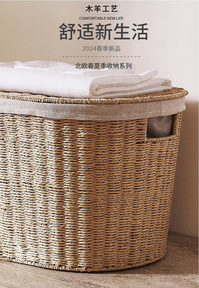 Cesta de ropa trenzada de cuerda de papel transfronteriza Cesta de almacenamiento Cesta de ropa sucia Cesta de almacenamiento Cesta de cubierta Cesta de almacenamiento Cesta de almacenamiento