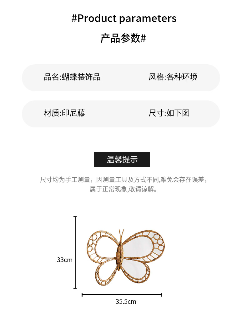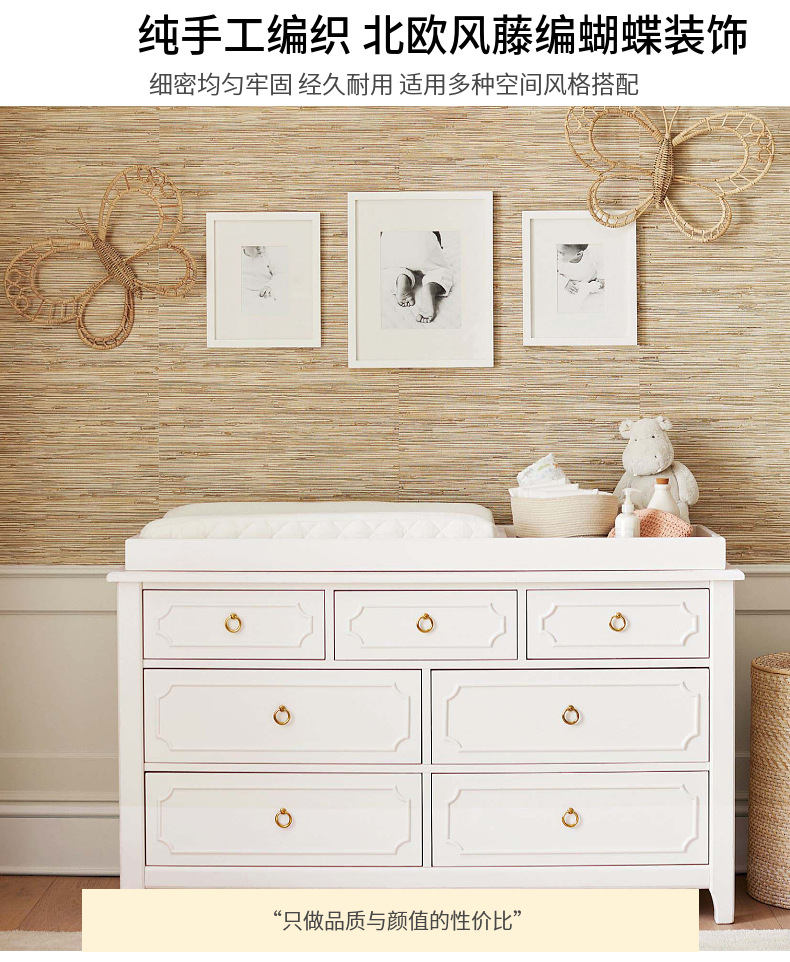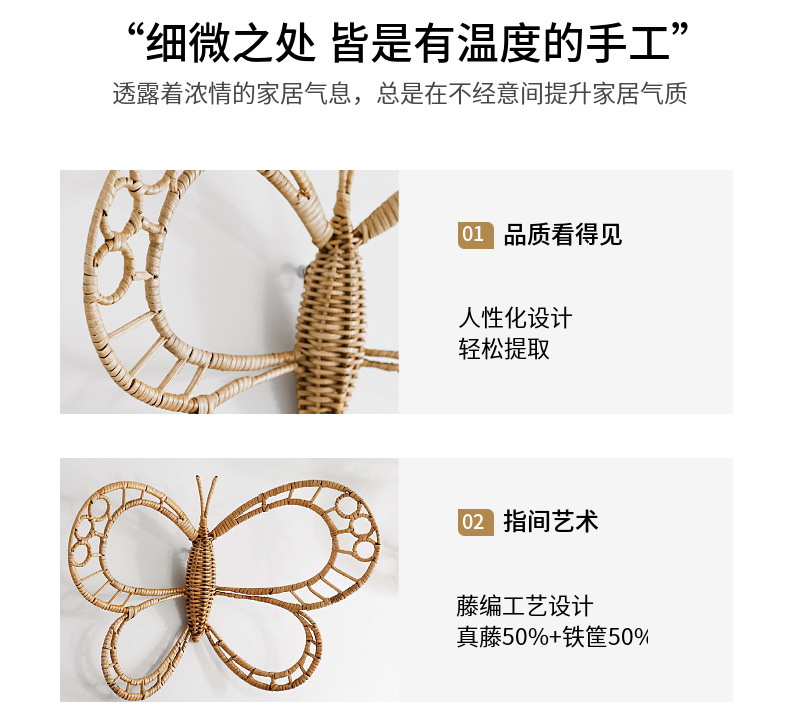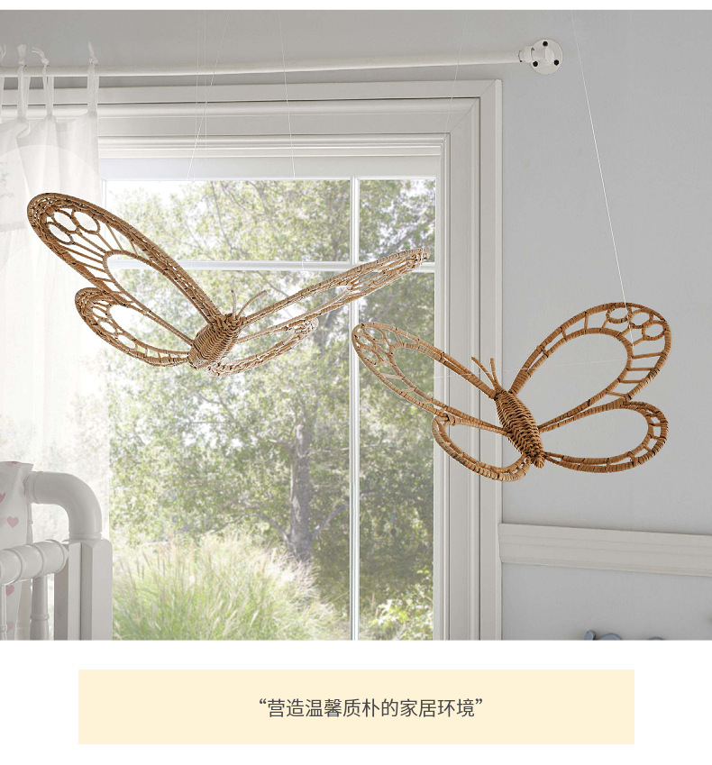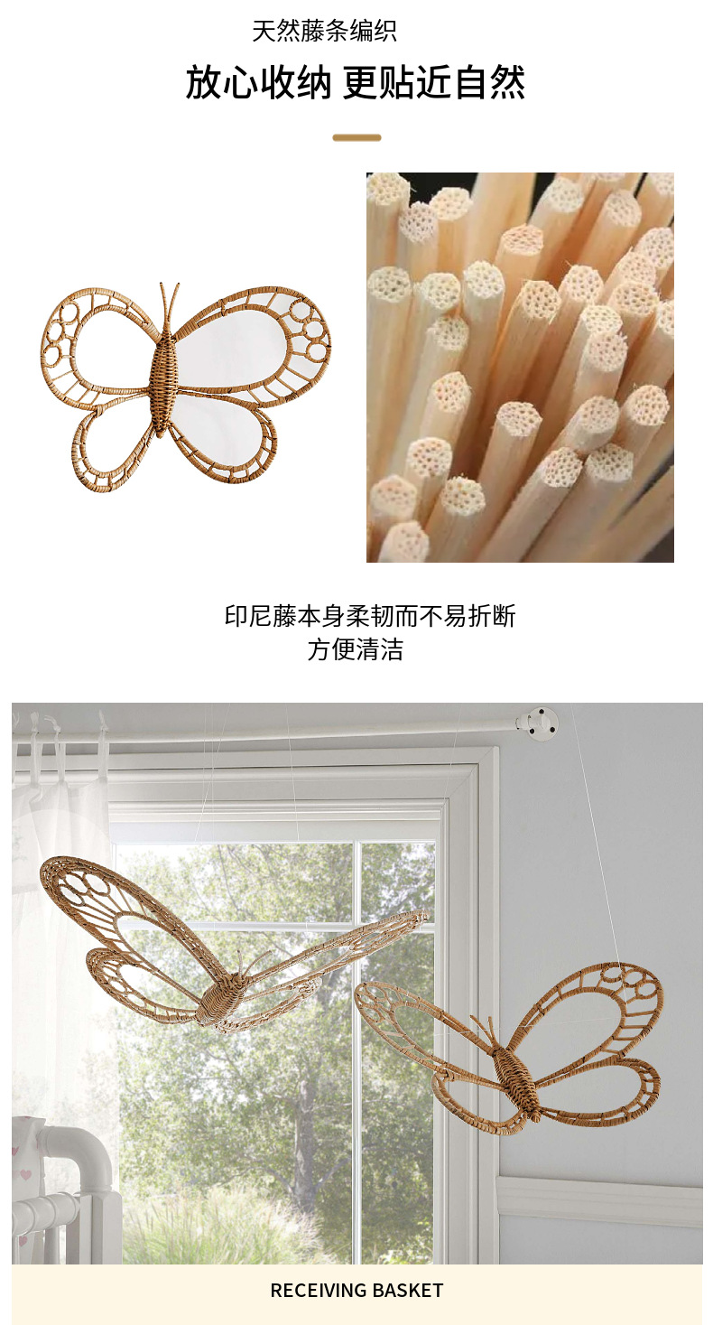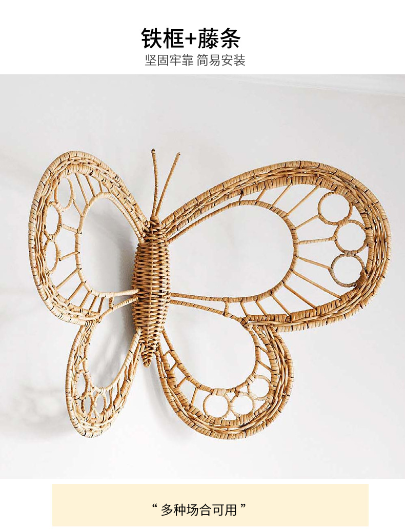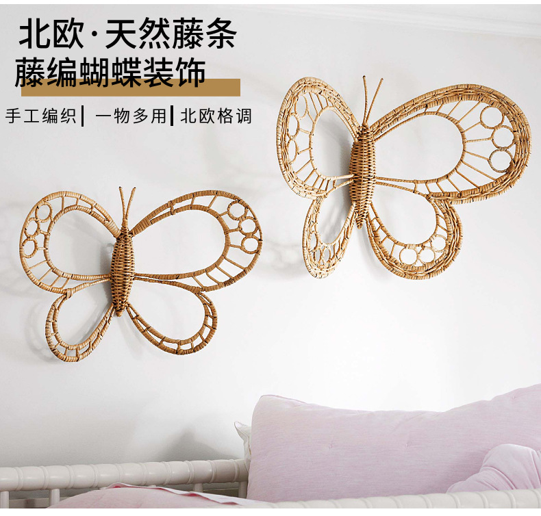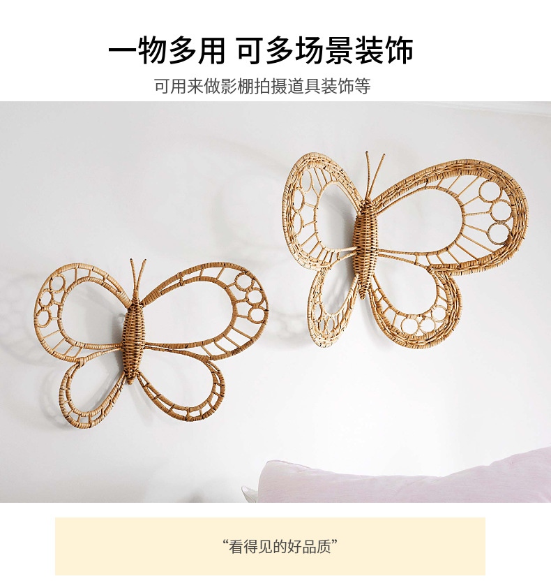 Estilo nórdico decoración de ratán paja forma de mariposa decoración de la pared B & B Hotel fotografía accesorios decoración colgante de pared