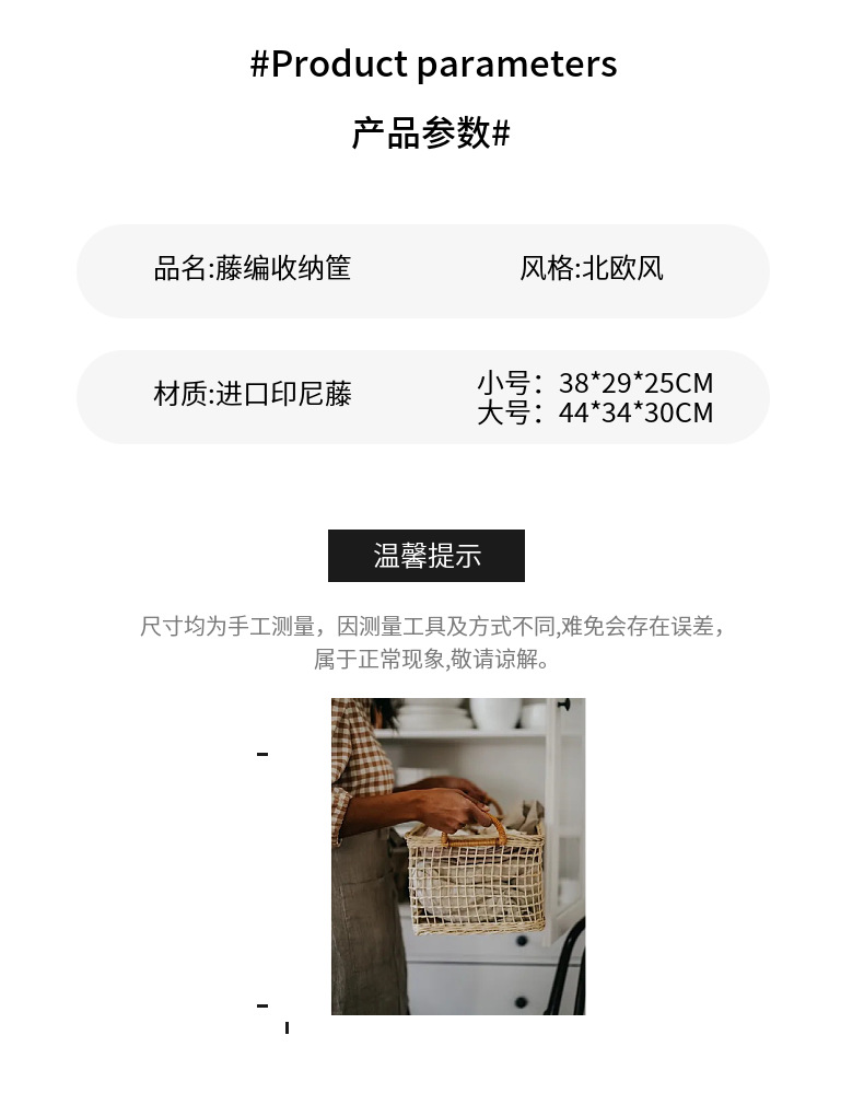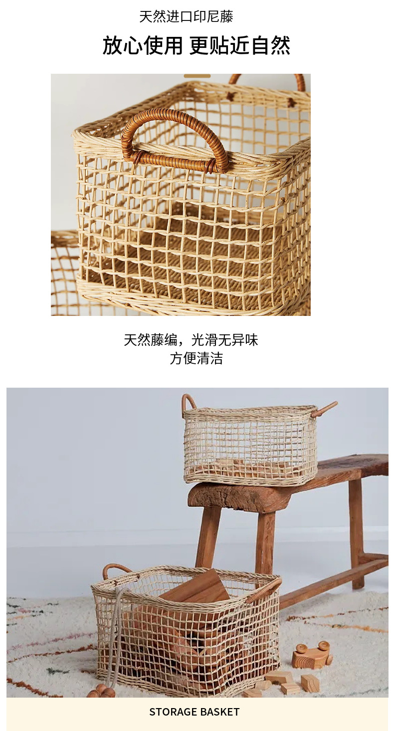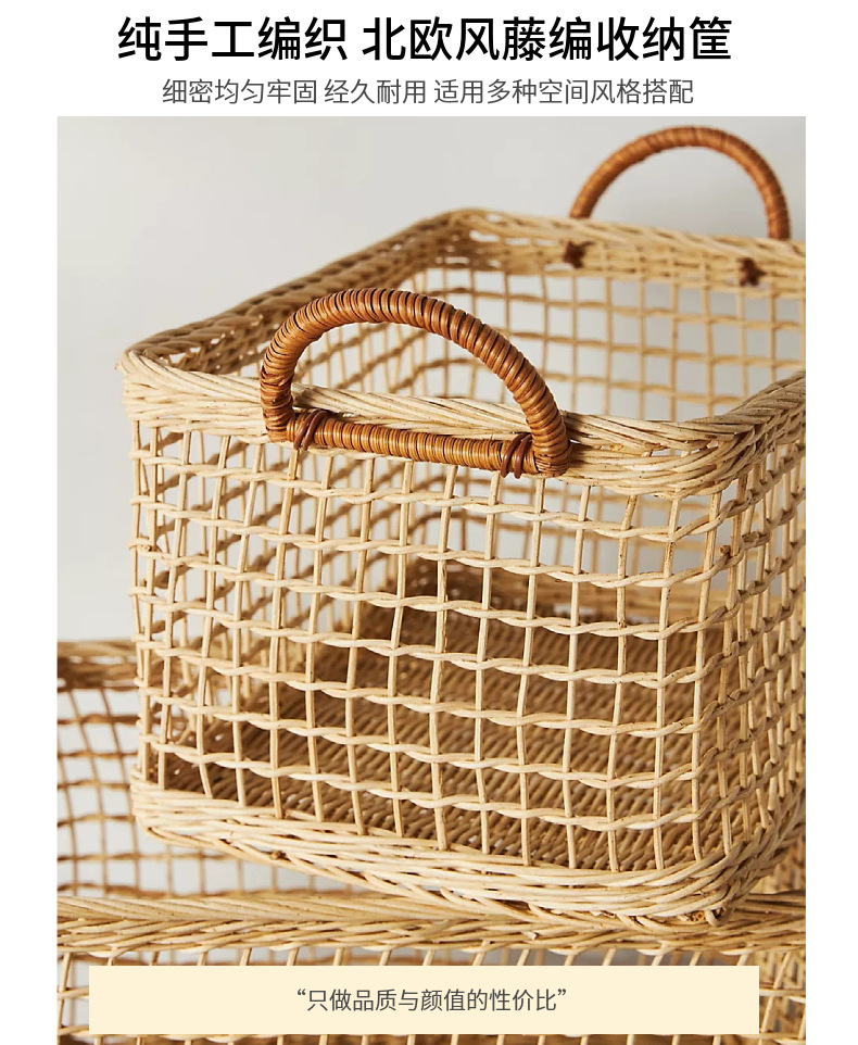 Cesta de almacenamiento de ratán natural Indonesia blanco ratán tejido mango hueco cesta fruta pan cesta de almacenamiento