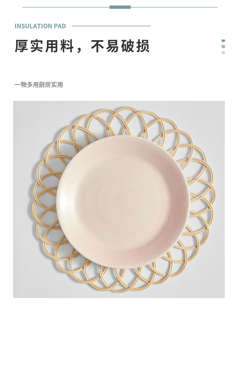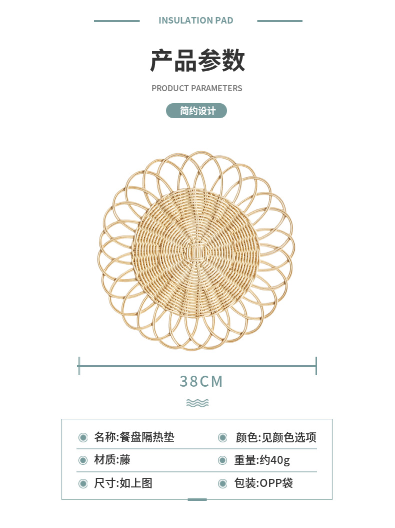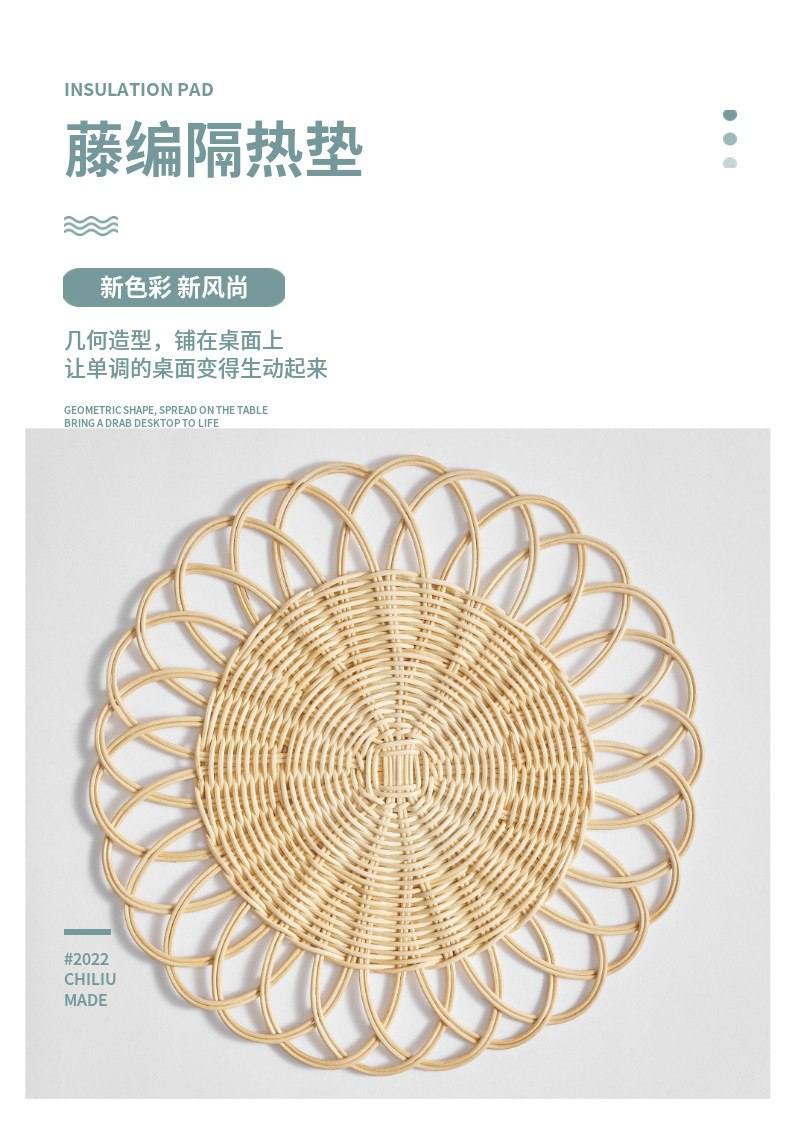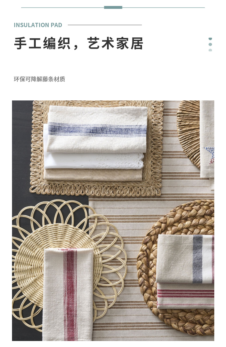 Suministro directo de fábrica al por mayor mantel tejido de ratán tapete de aislamiento antideslizante estilo pastoral decoración de bodas tapete de mesa posavasos